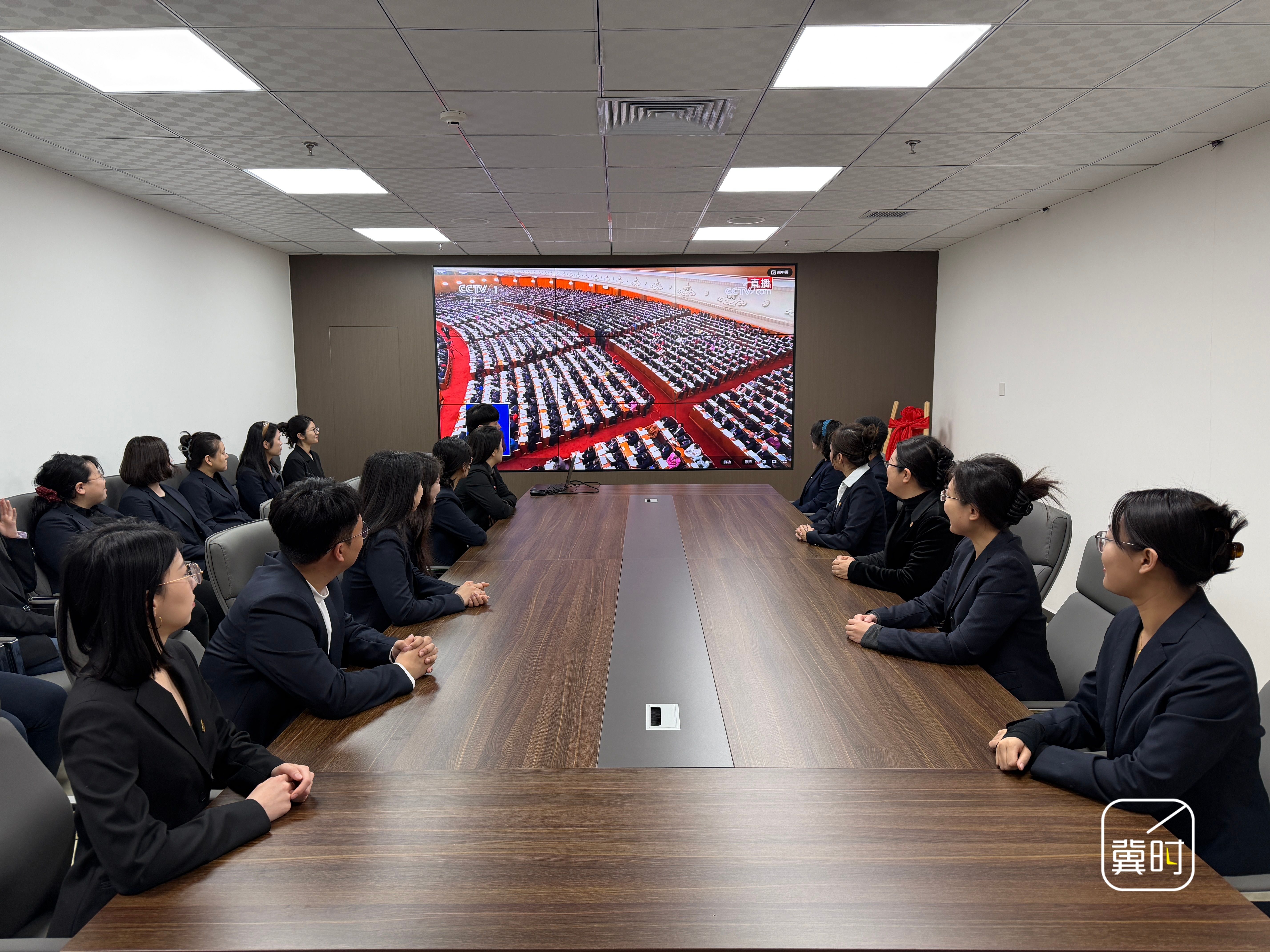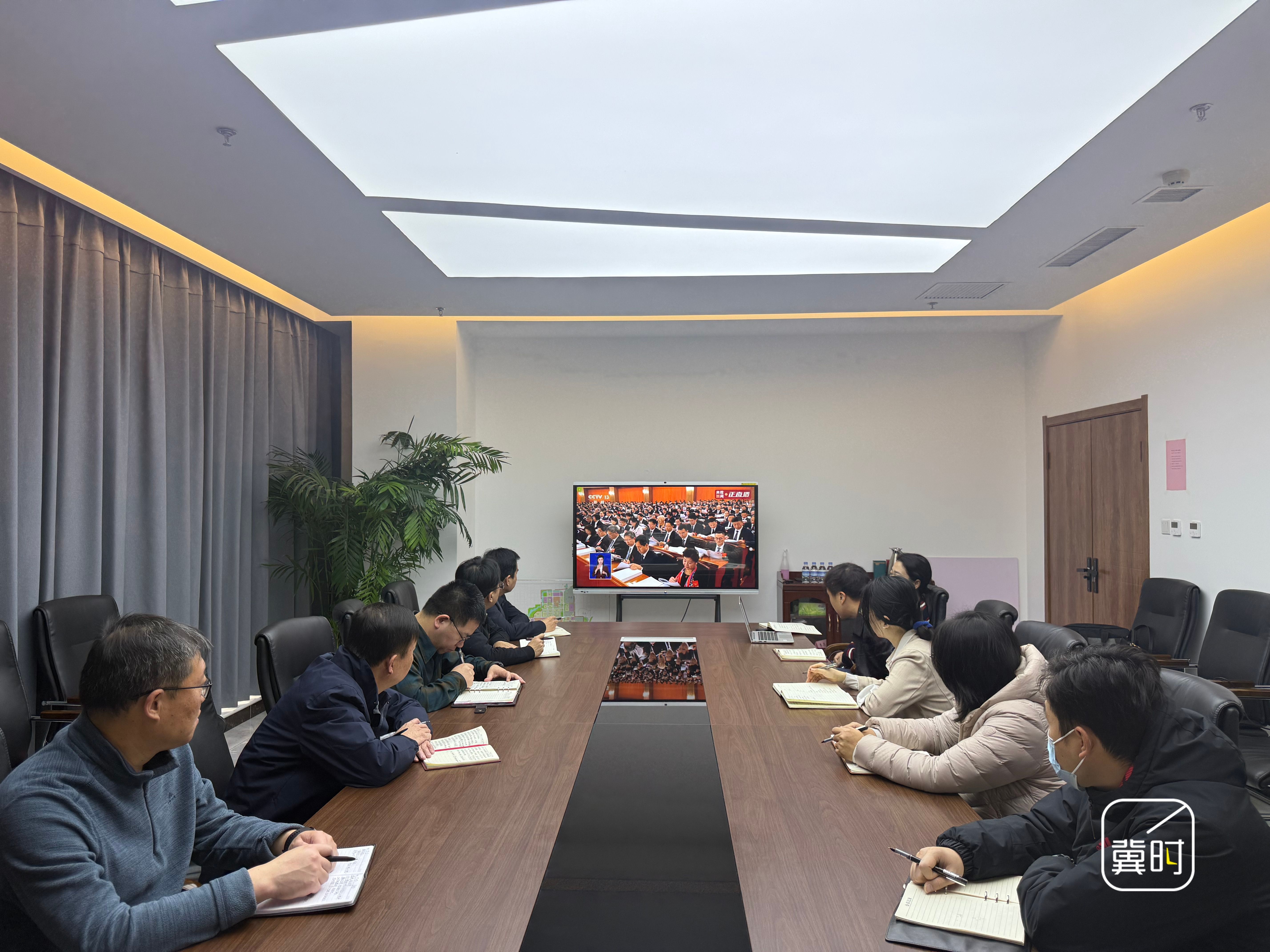 石家庄国际生物医药园的干部职工集中收看十四届全国人大四次会议开幕会直播。(河北台 王丹 陈卓)