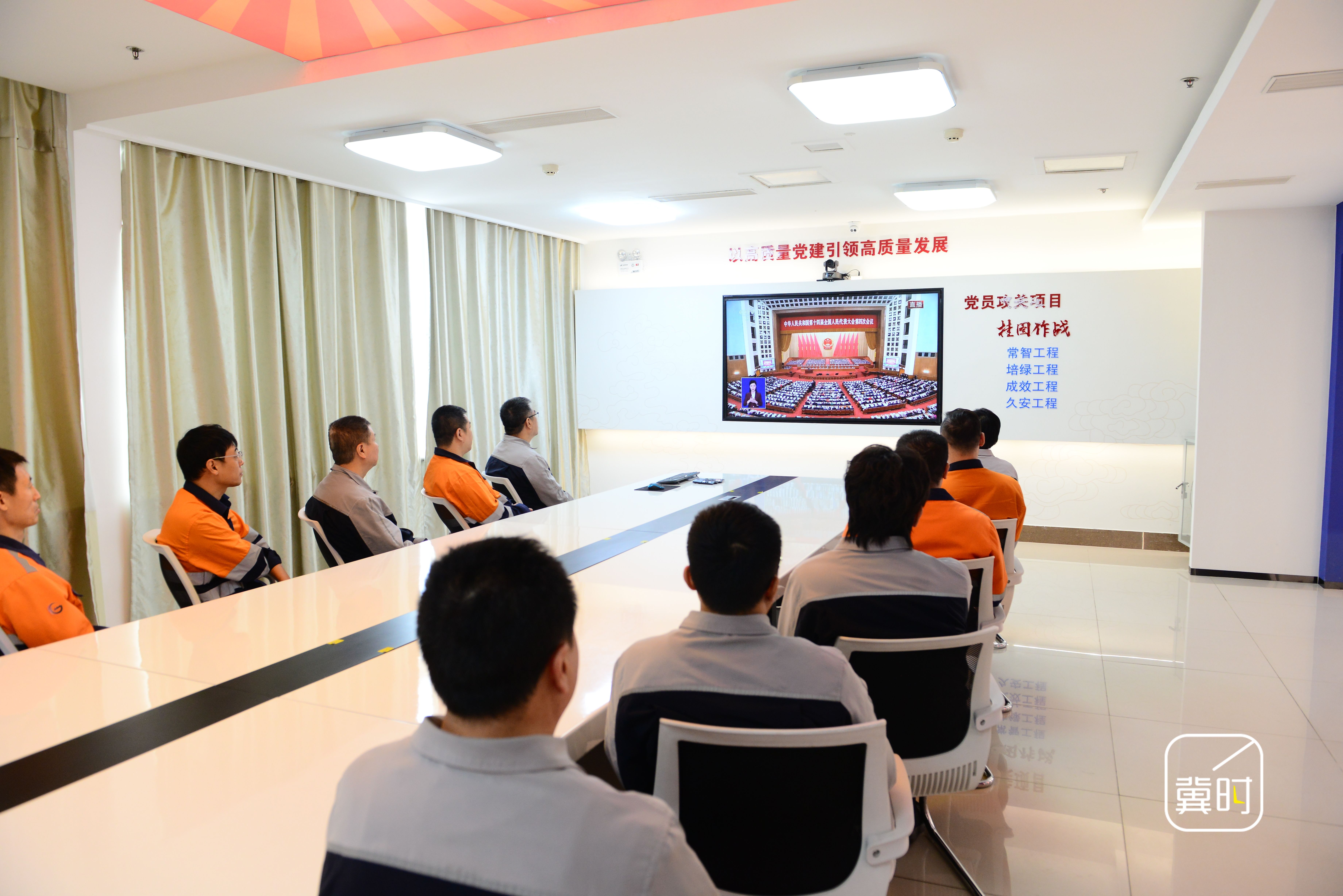 秦港股份九公司组织干部职工集中收看十四届全国人大四次会议开幕会直播实况。(河北台 张志刚 米弘钊 赵永鑫 李泽群 通讯员 郭海潮)