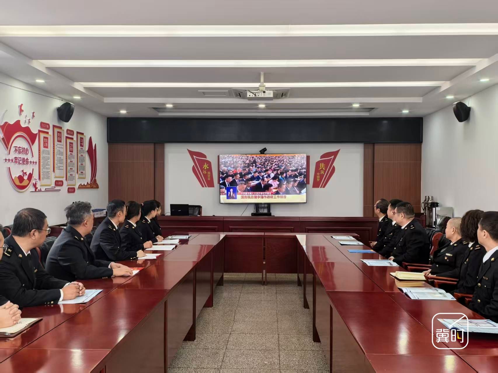 秦皇岛海关煤炭检测技术中心组织全体干部职工集中收看开幕会直播。(河北台 张志刚 米弘钊 赵永鑫 李泽群 通讯员 寇振新 倪旺)