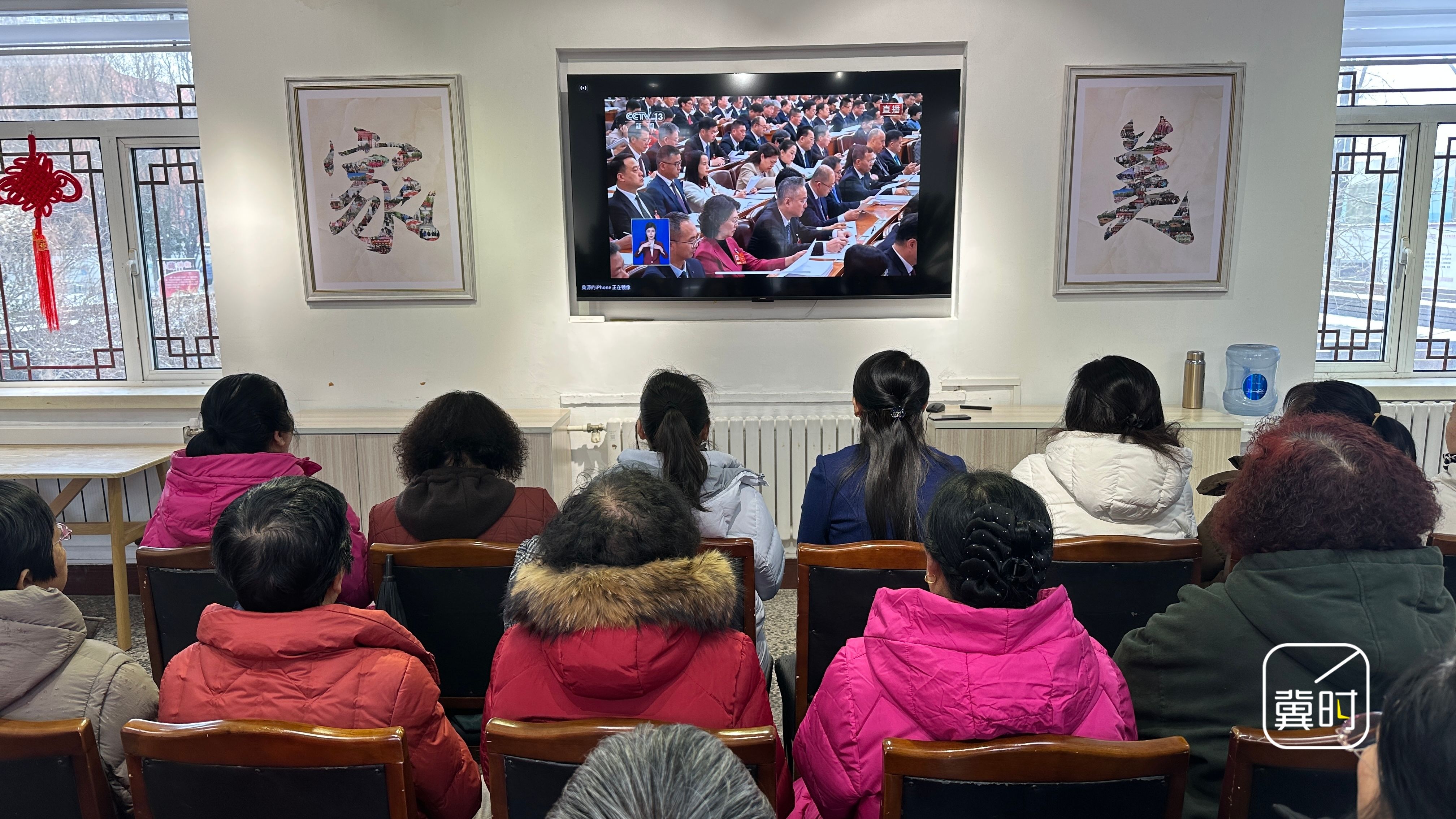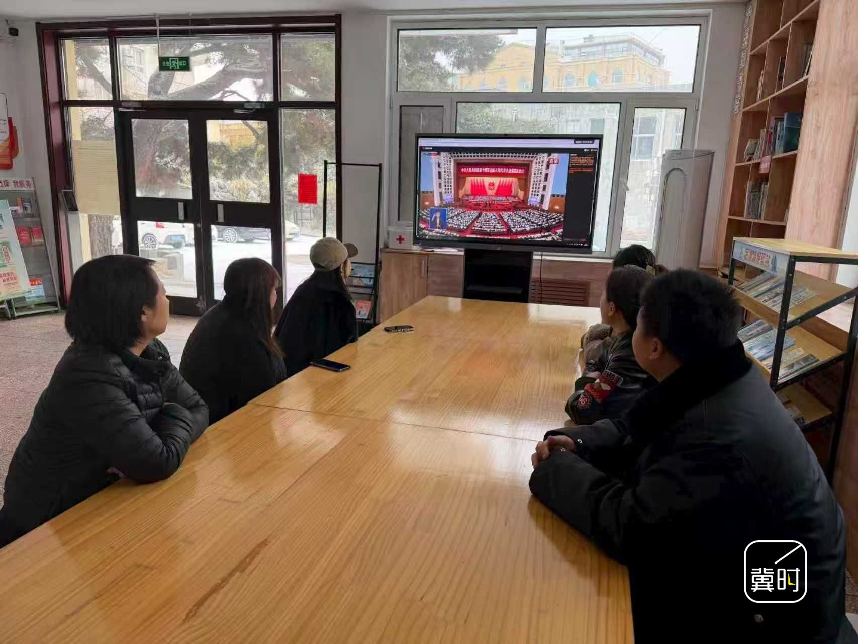 唐山祥富里社区工作人员和居民代表集中收看十四届全国人大四次会议开幕会直播,认真聆听《政府工作报告》。(河北台 陈维威 石博宇 桑源)