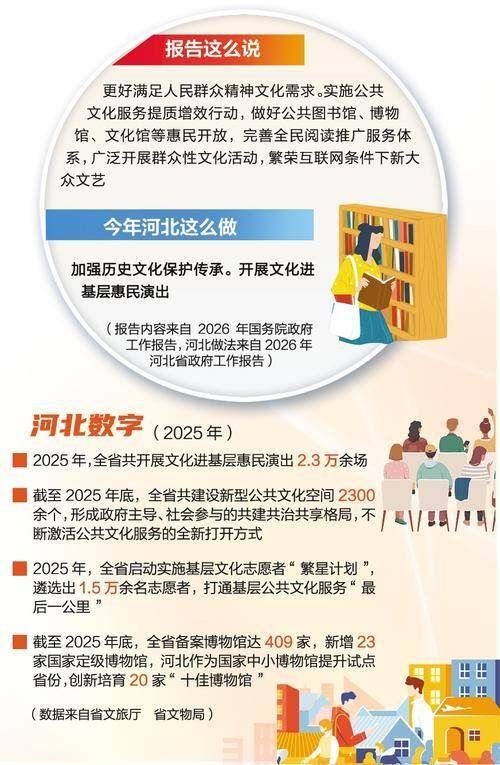 “四季村晚”让群众的文艺活力创造力充分展现;“遇见艺术”惠民演出让文化艺术从殿堂走向群众;“冀图邮书”实现覆盖全省的“一键借阅 送书到家”惠民服务……全省各地、各部门不断延伸文化服务触角,创新服务模式,推动优质文化资源直达基层,更好满足群众多样化、高品质的文化需求。有数据统计显示,2025年,全省开展文化进基层惠民演出2.3万余场。