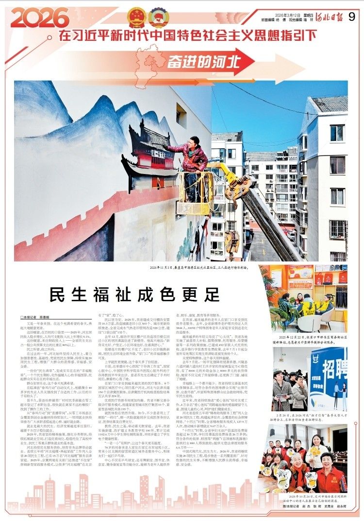 中国式现代化,民生为大。2026年,我省将继续实施20项民生工程,稳步推进一系列覆盖面广、针对性强的民生实事,不断增强人民群众获得感、幸福感、安全感。(河北日报记者 薛惠娟)