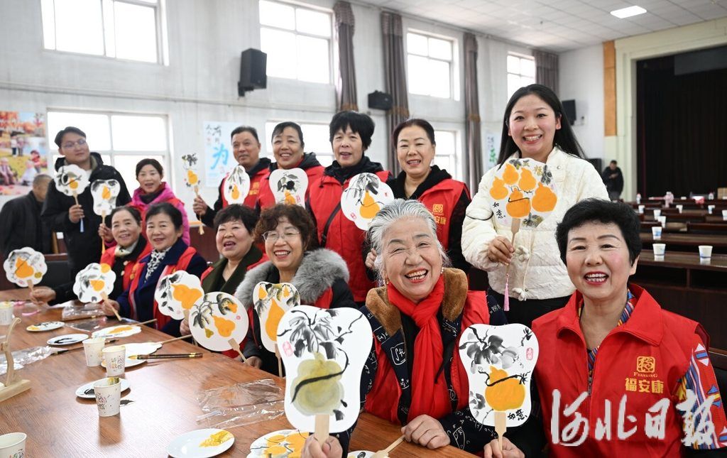 2025年10月24日,定州市福安康日间照料活动中心的老人在展示自己绘制的团扇。河北日报记者 赵永辉摄