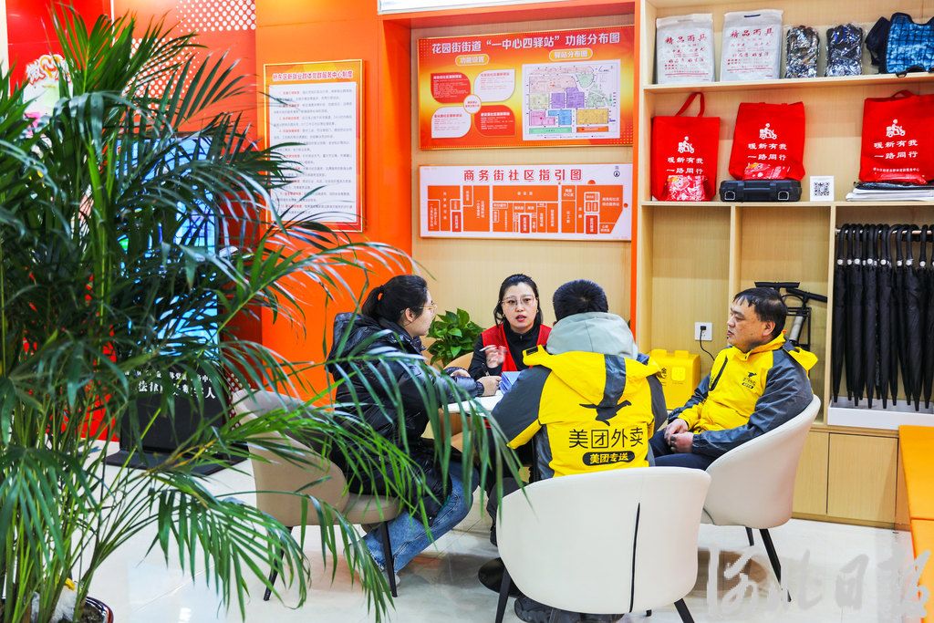 2025年12月22日,张家口市桥东区商务街社区暖新驿站,志愿者为外卖骑手提供咨询服务。河北日报记者 耿辉摄