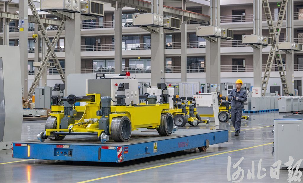 2月2日,唐山百川共享制造工厂,工人正在运送设备。河北日报记者赵杰摄