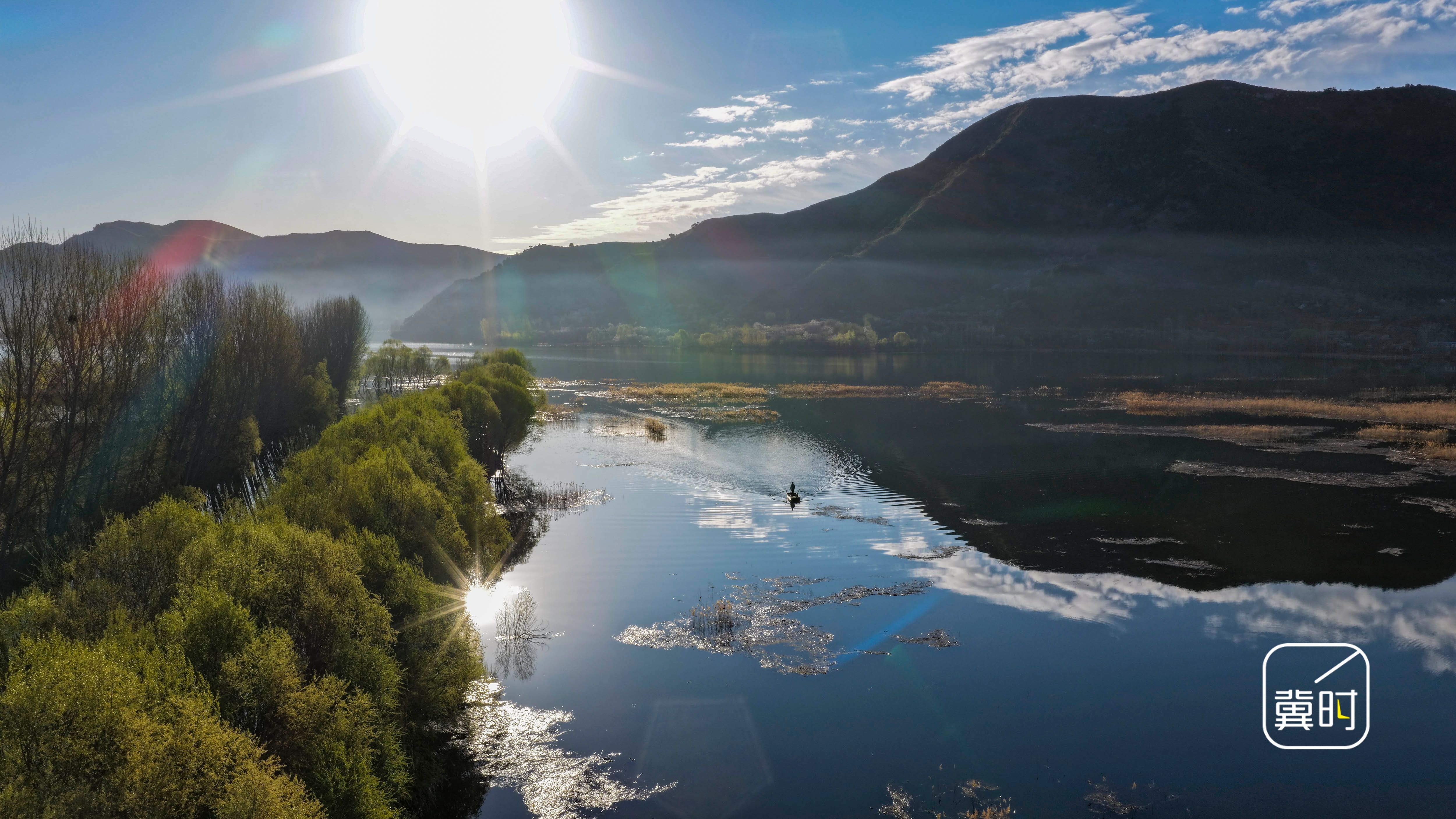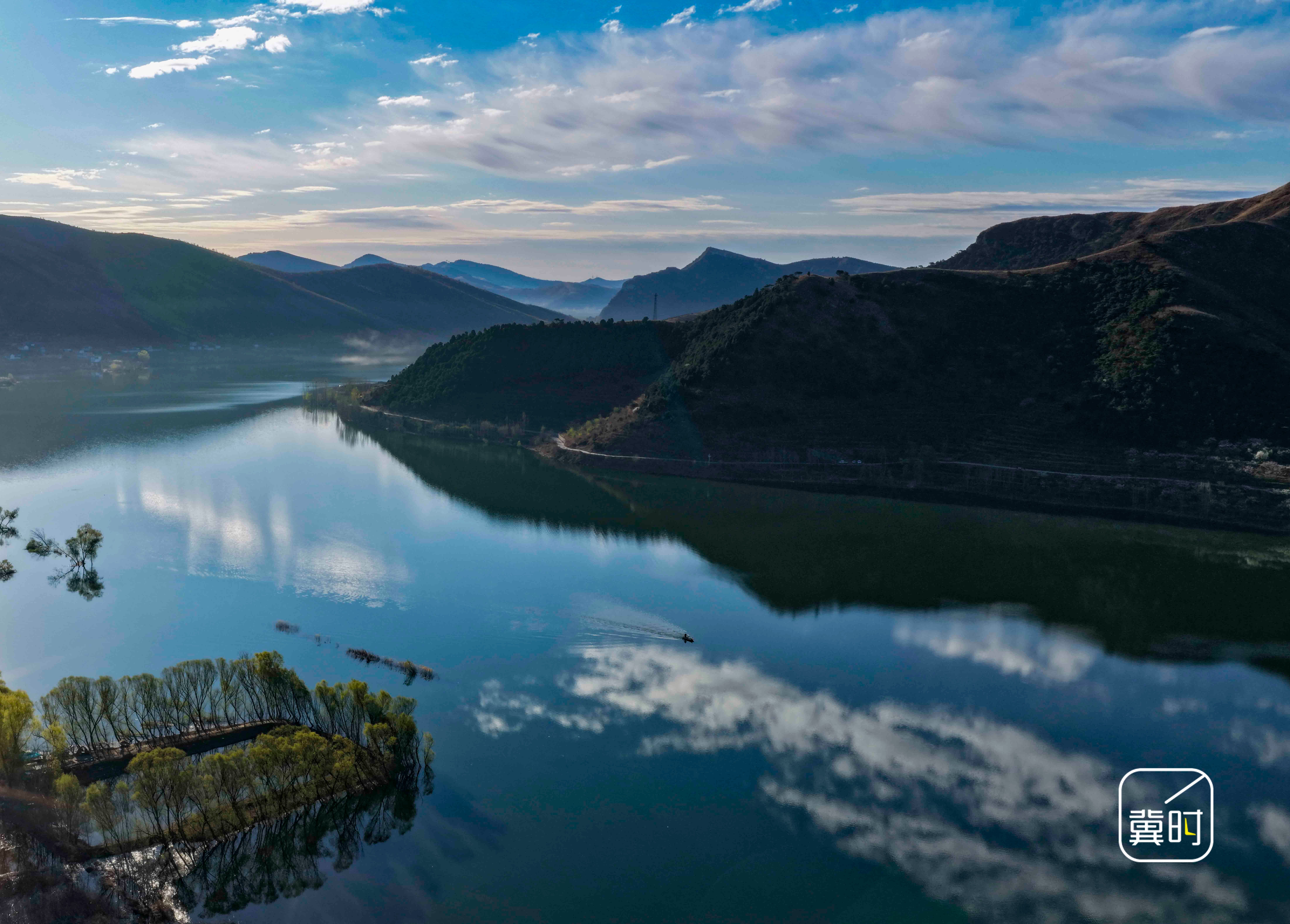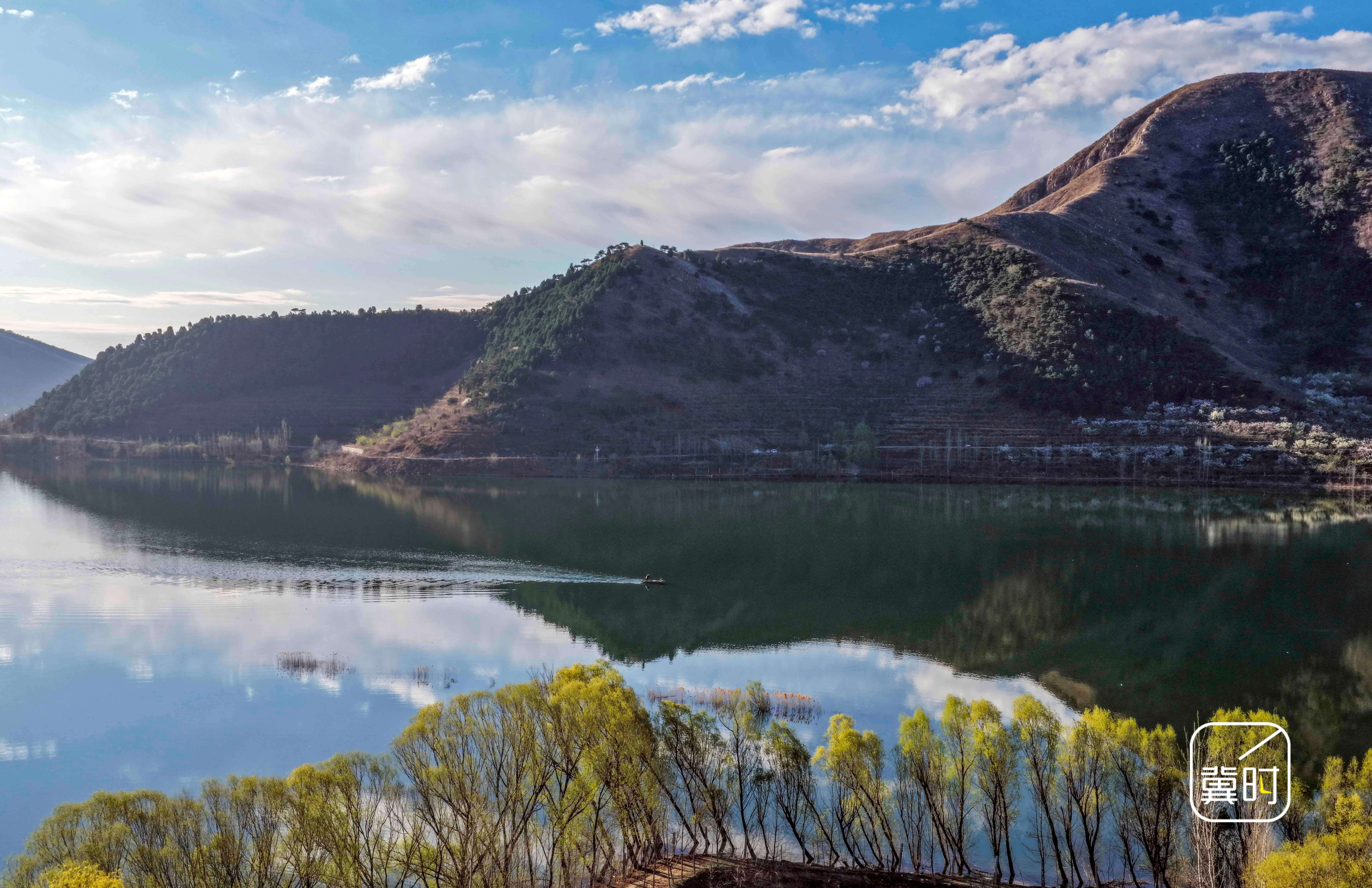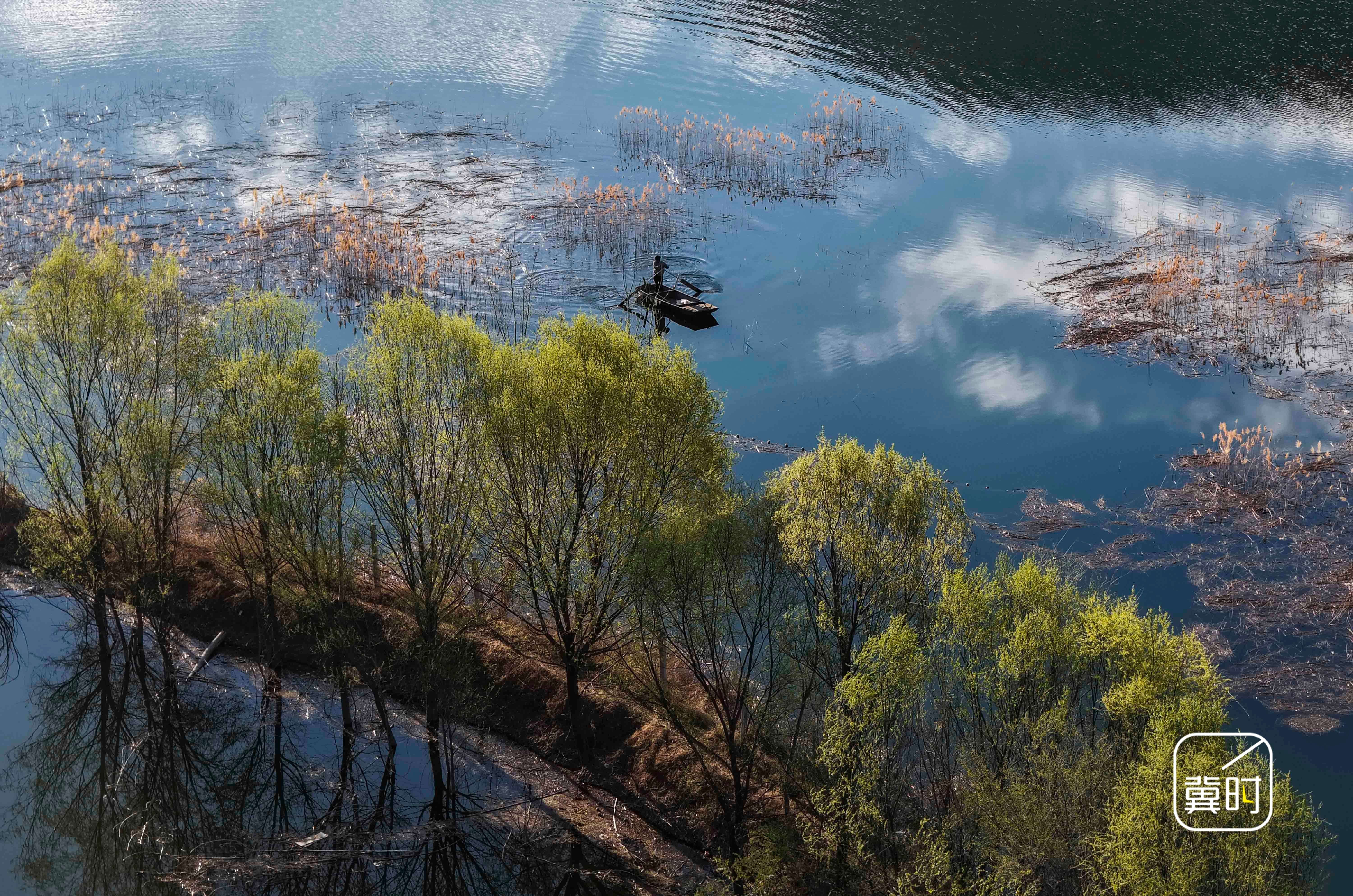 冀时新闻报道(通讯员 刘满仓)4月6日早晨,唐山遵化市金凤湖天蓝水清,晨光中船影游动、云影婆娑,美景如画。