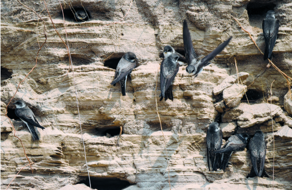 4月9日,崖沙燕在垂直沙质崖壁上筑巢。