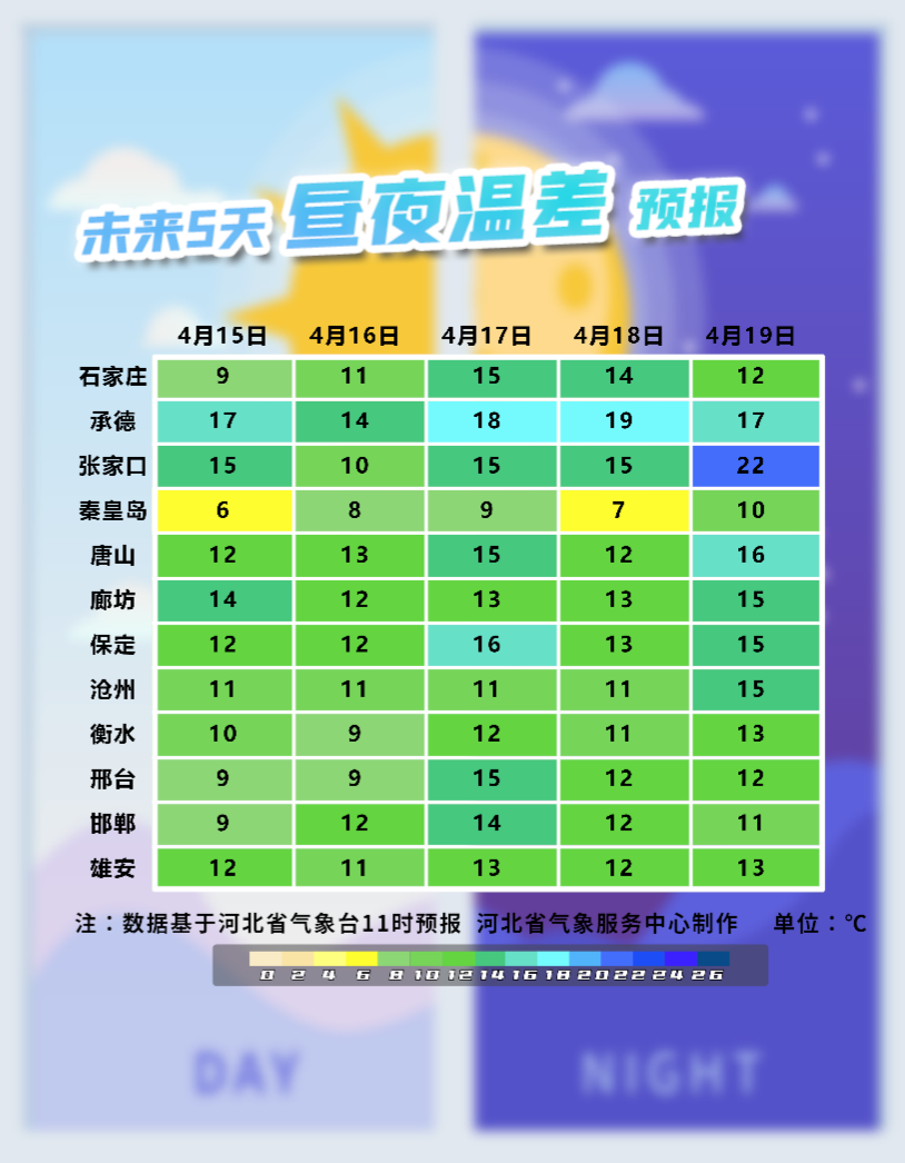 明天夜间到16日,唐山南部、秦皇岛南部晴转多云间阴,其他地区晴转阴有雷阵雨或阵雨,其中张家口、承德的部分地区有中雨。