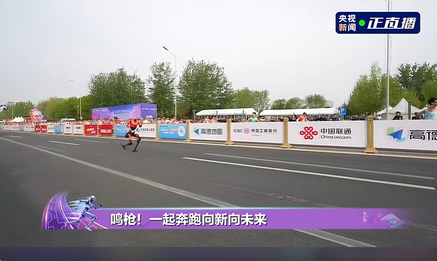 7:30,发令枪响!由北京市人民政府、中央广播电视总台等联合主办的2026人形机器人半程马拉松在北京亦庄正式开跑。自主导航和遥控赛队同场竞技,采用混合计时、统一排名。参赛机器人逐次出发,来自北京荣耀的绝影赤兔队率先开跑,该战队的参赛机器人为“闪电”。