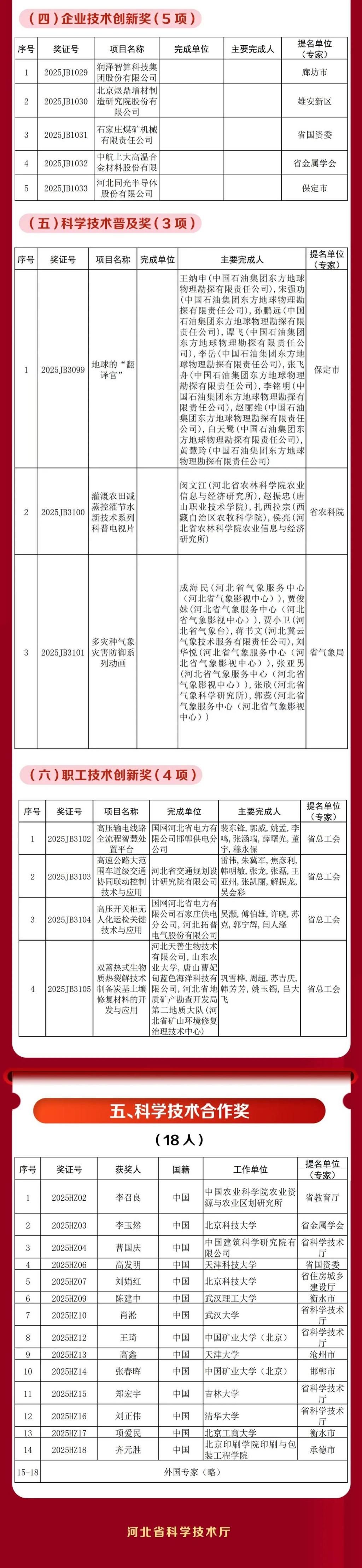 4月22日,2025年度河北省科学技术奖励大会在石家庄召开,对促进我省科学技术进步和经济社会发展作出突出贡献的单位和个人颁奖,275项(人)获2025年度河北省科学技术奖。