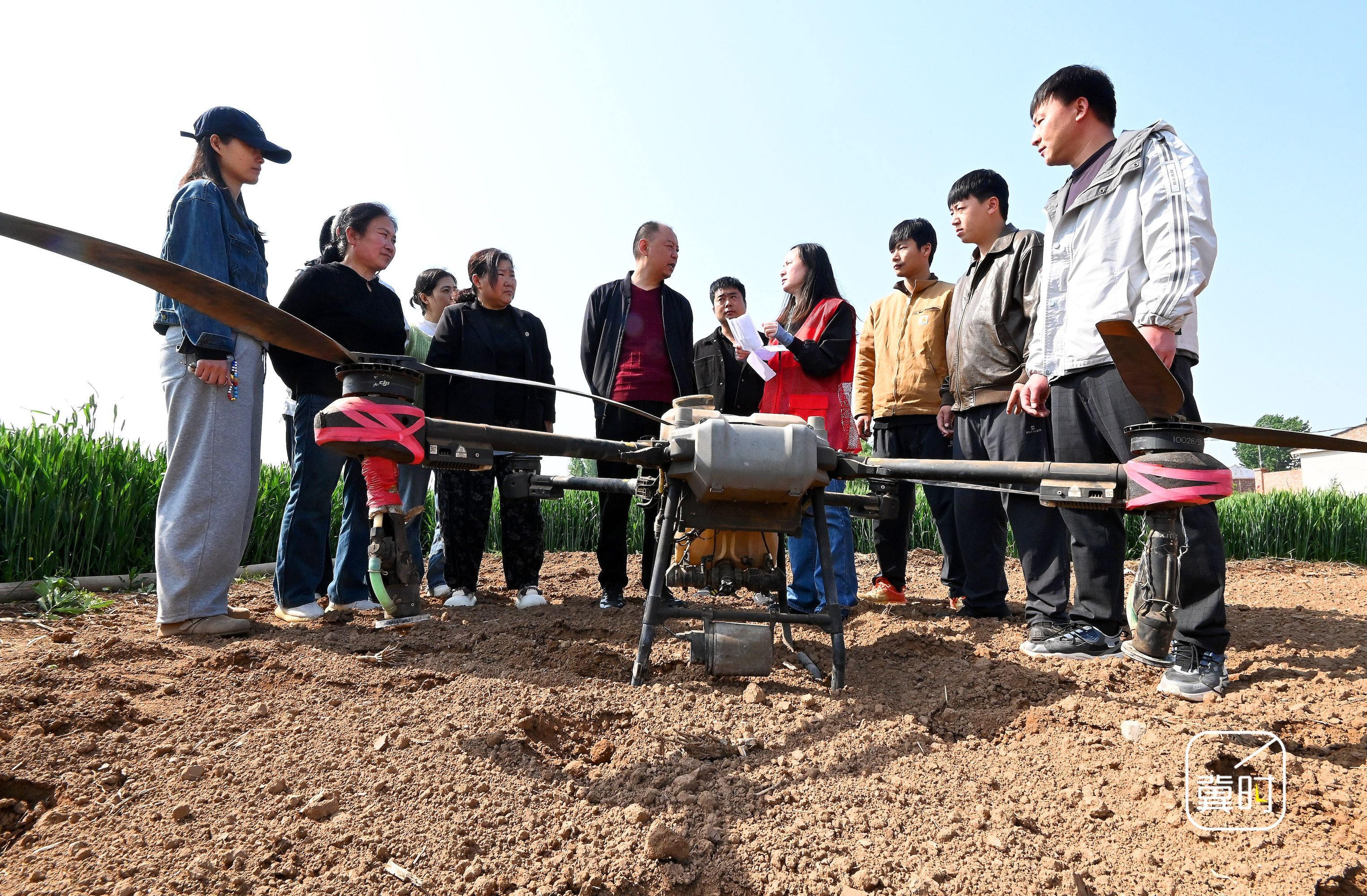 4月24日,在河北省邯郸市邯山区代召乡东王庄村,农技人员向村民讲解植保无人机在小麦“一喷三防”作业中的应用要点,助力夏粮稳产增收。