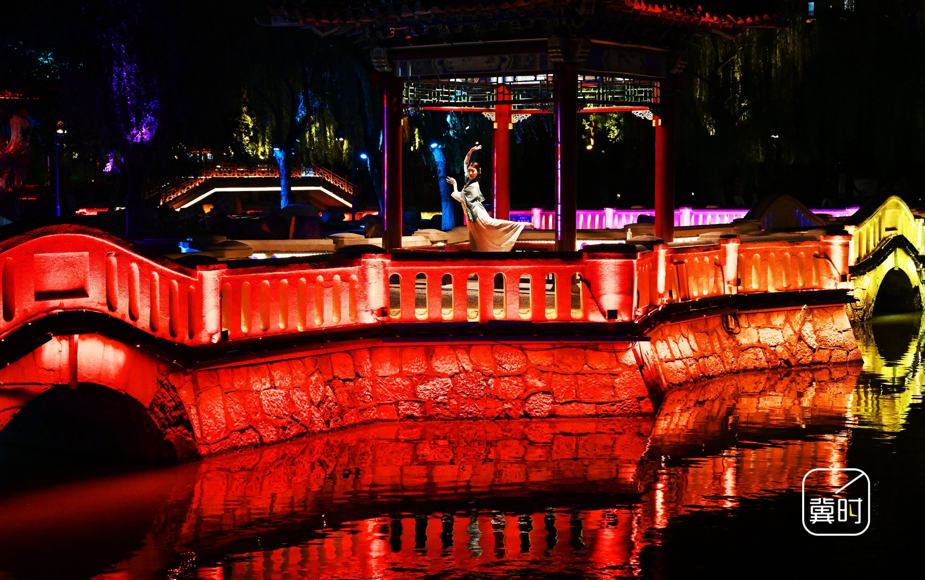 冀时新闻报道(拍客 郝群英)“五一”小长假临近,河北省邯郸市丛台公园夜色如画,流光溢彩。夜幕下,武灵丛台被暖光勾勒出巍峨轮廓,飞檐翘角在灯光中重现千年风华,市民与游客漫步游园,在光影交错间赏景、闲谈,一派热闹喜庆的假日氛围。