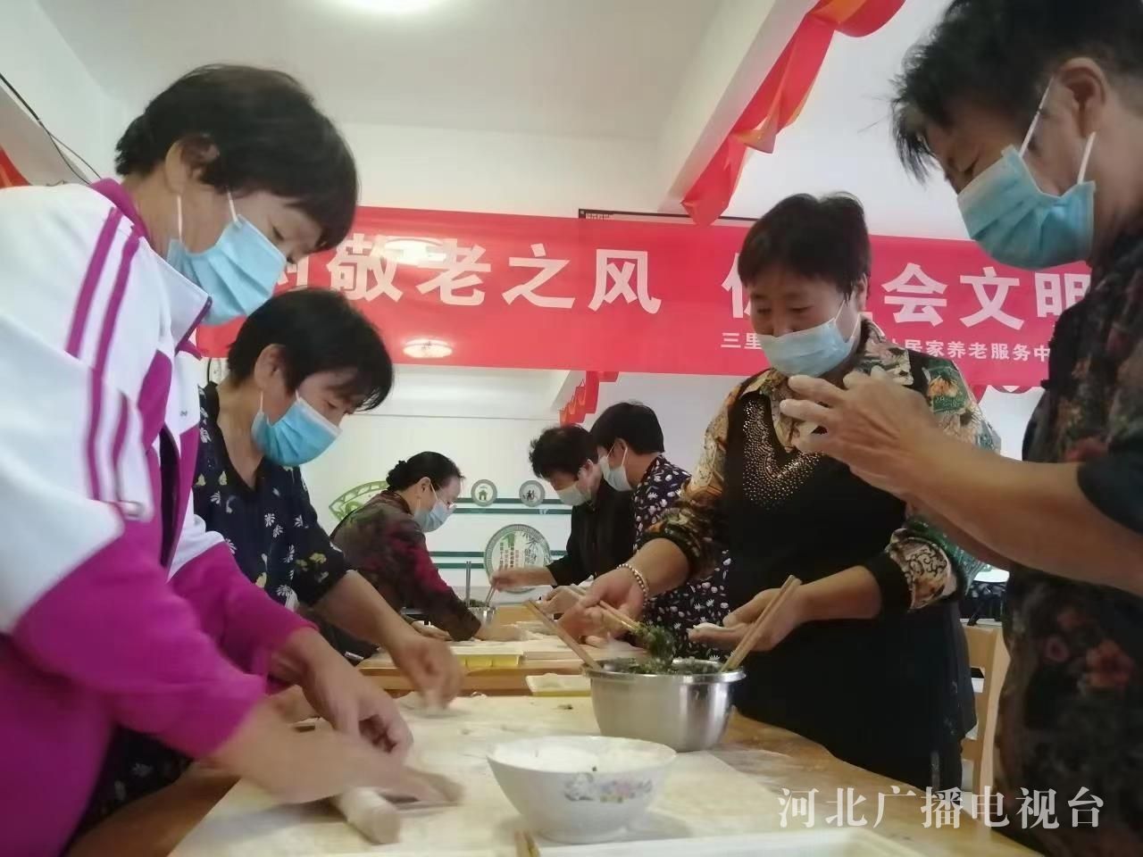 在正定县三里屯街道综合居家养老服务中心,小区党员、群众志愿者忙得热火朝天,切菜、和面、擀皮……个个干劲十足。志愿者和老人们一边包饺子一边聊家常,询问老人近期生活及身体状况,为他们送去节日的祝福。两个多小时后,在大家分工协作下,几百个薄皮大馅儿的饺子出锅,志愿者们一盘盘端到每个老人的手中。大家拿着筷子,你一个我一个,开心地品尝着香喷喷的饺子。“我们好久没有感受到这么热闹的节日氛围了,感谢你们,这是一个非常有意义的重阳节,我们的心里也格外温暖!”老人们说。