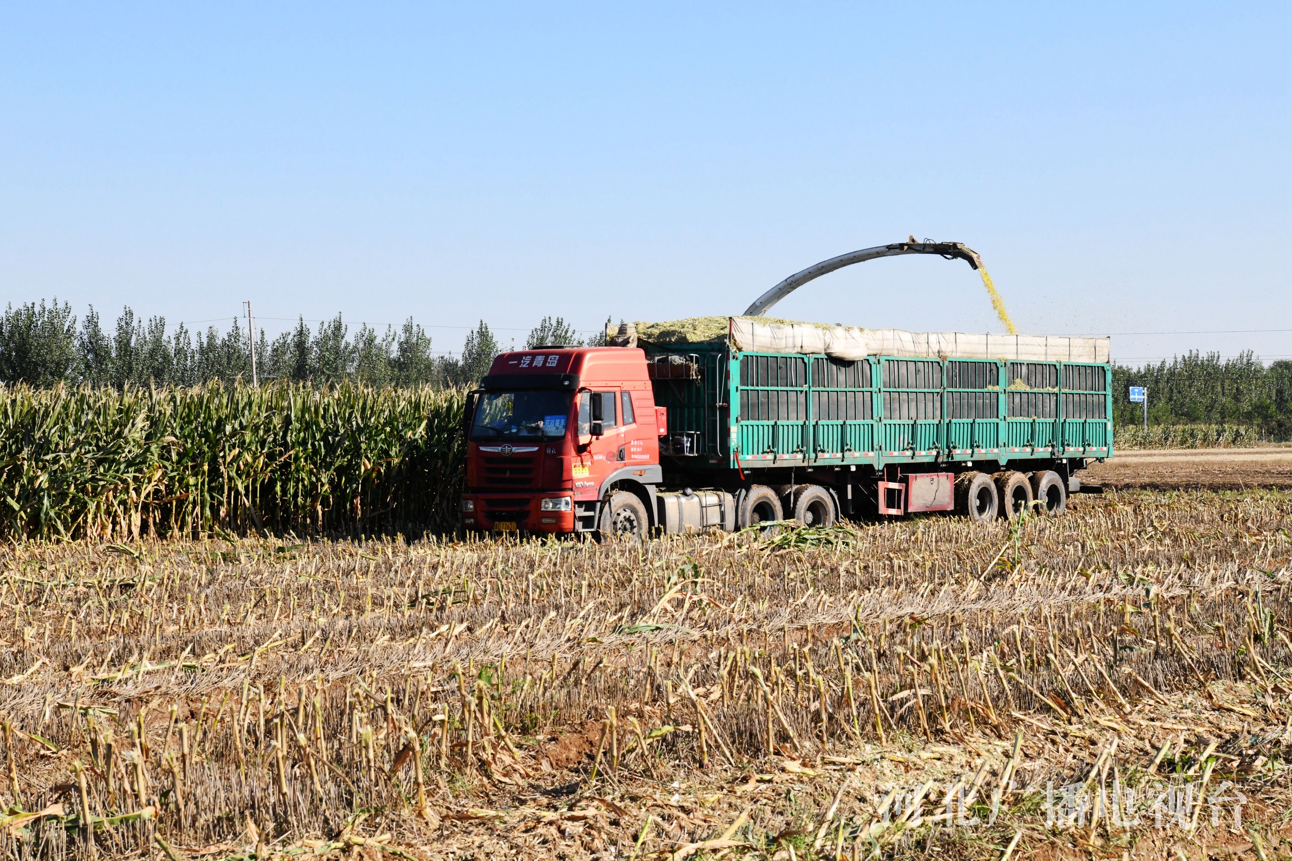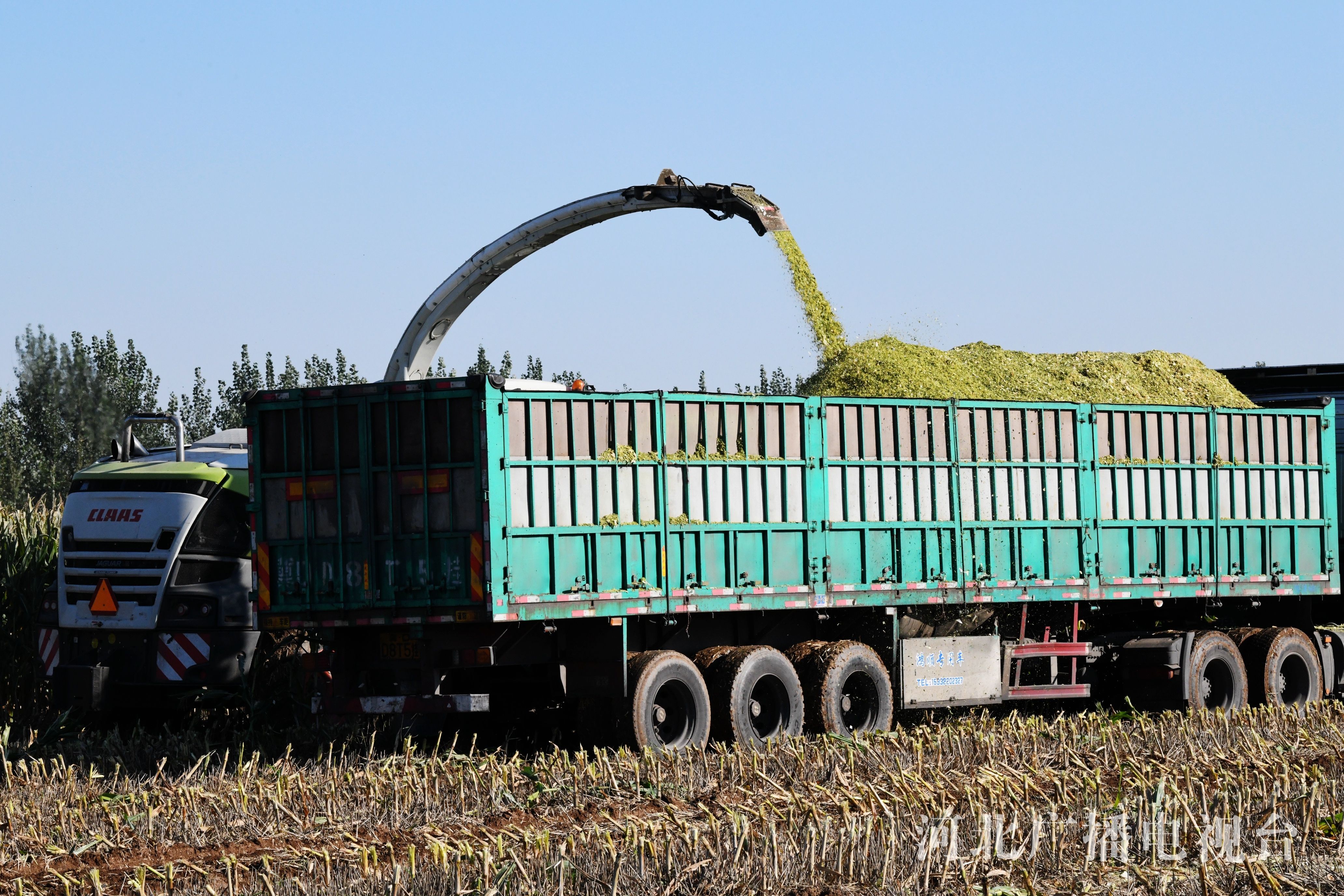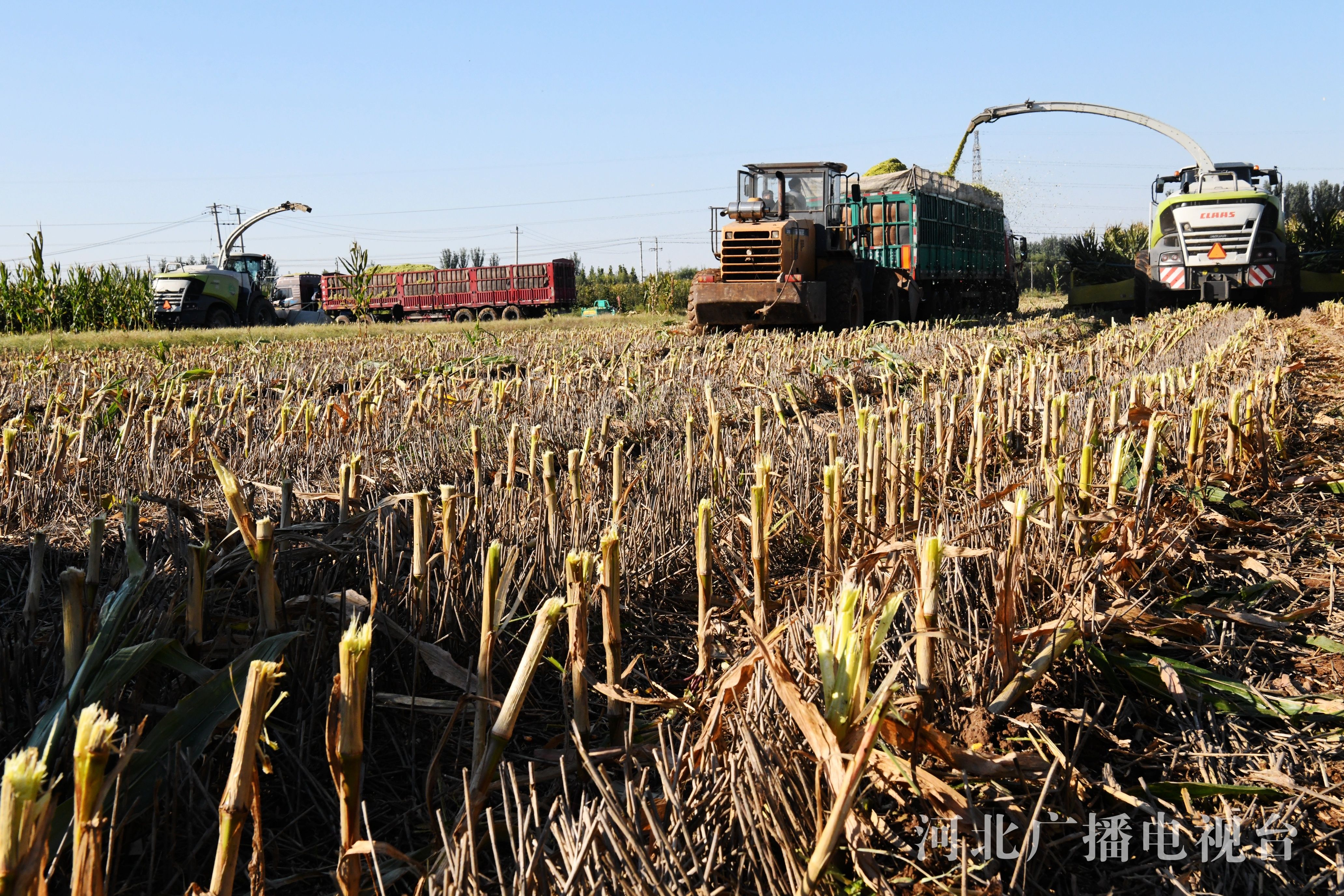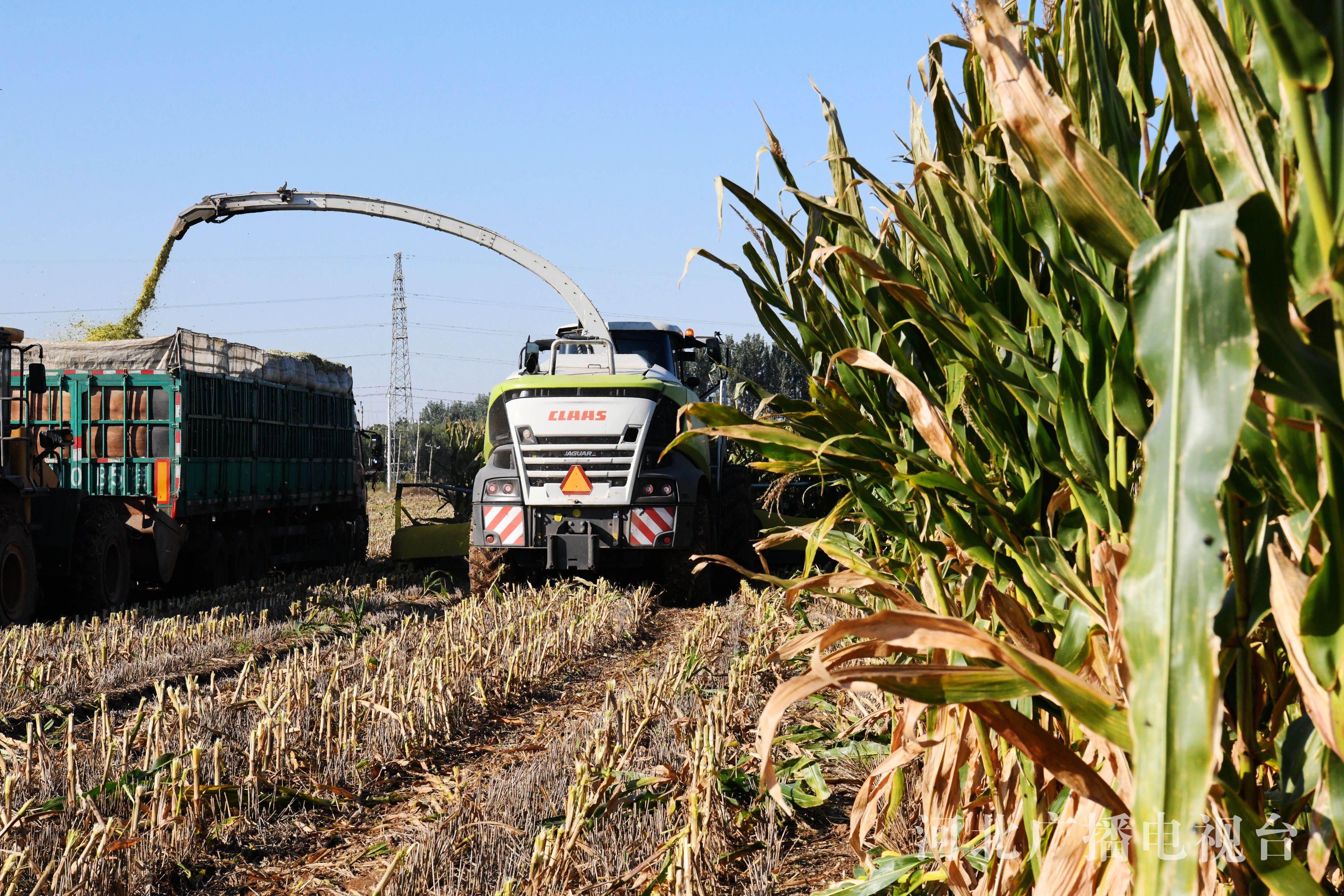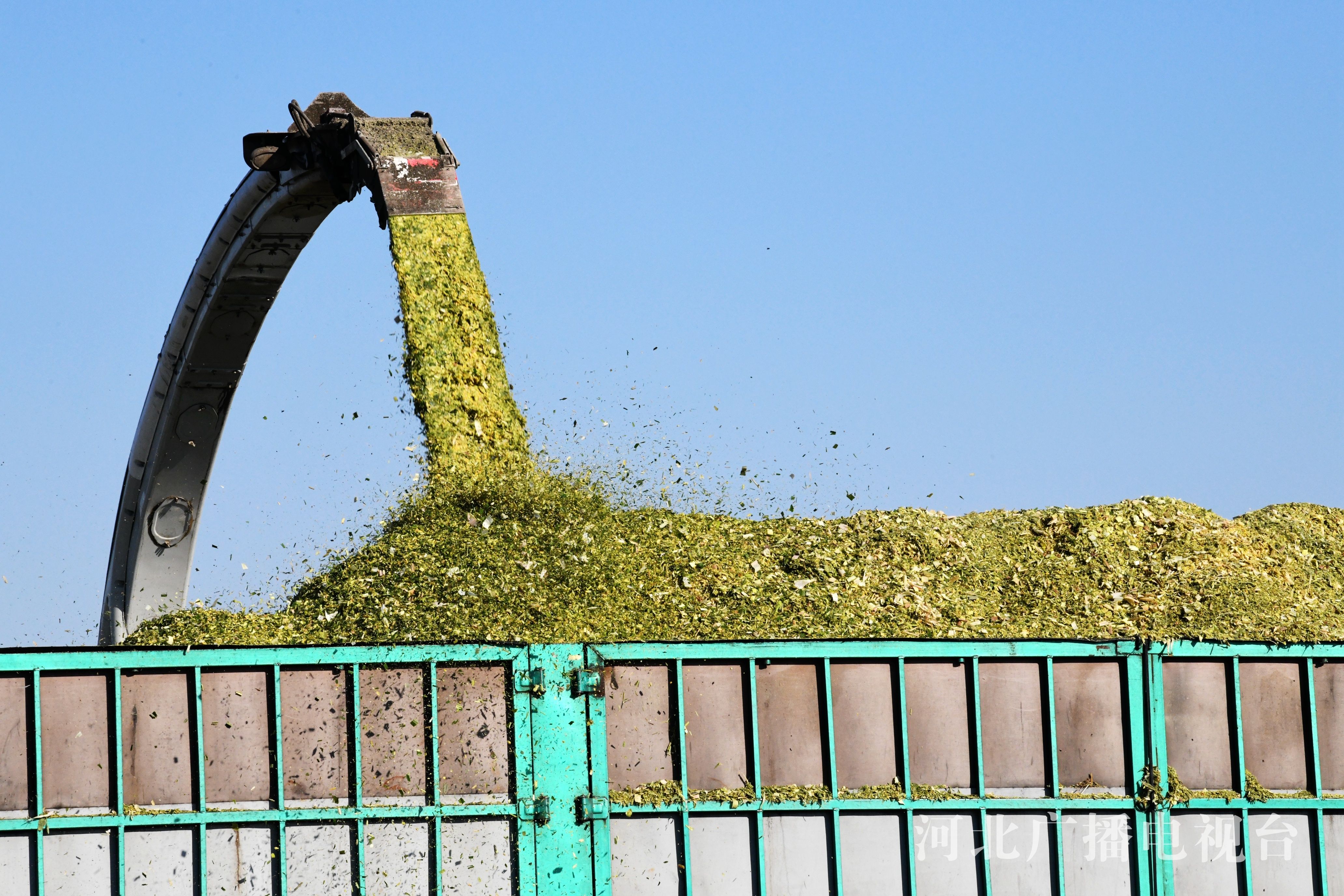 冀时客户端报道(拍客 程学虎)2022年10月10日,在河北省邯郸市广平县南阳堡镇东贤店村田间,农民使用大型机械收割青贮玉米。