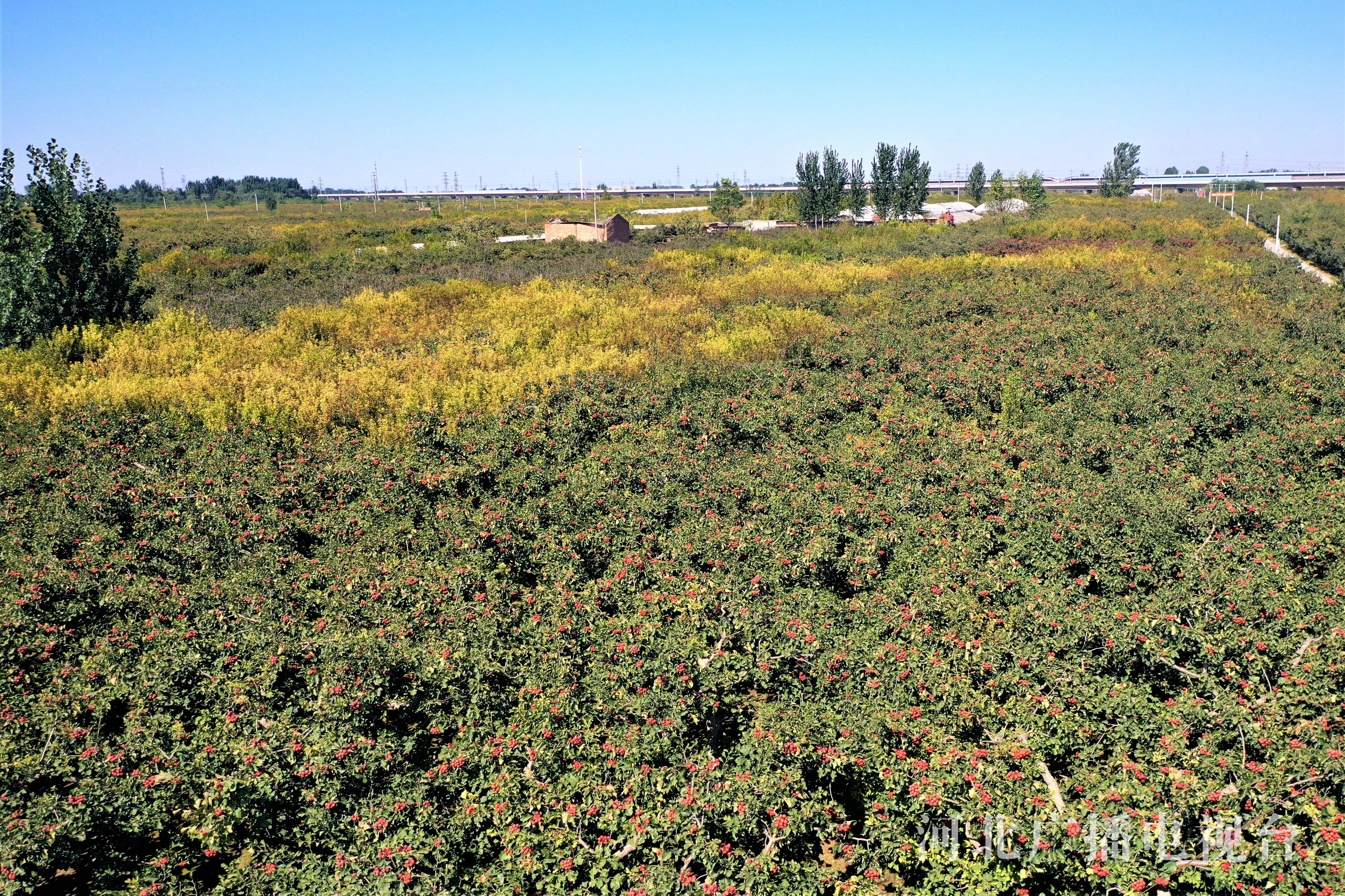 冀时客户端报道(河北台 杜岩卿 晋州台 齐伟 李增耀 张宗广 贾玉珊)金秋十月,记者在晋州市马于镇西贾庄村看到,一颗颗红彤彤的山楂挂满枝头,路两旁到处是长满累累硕果的山楂树,十分喜人。