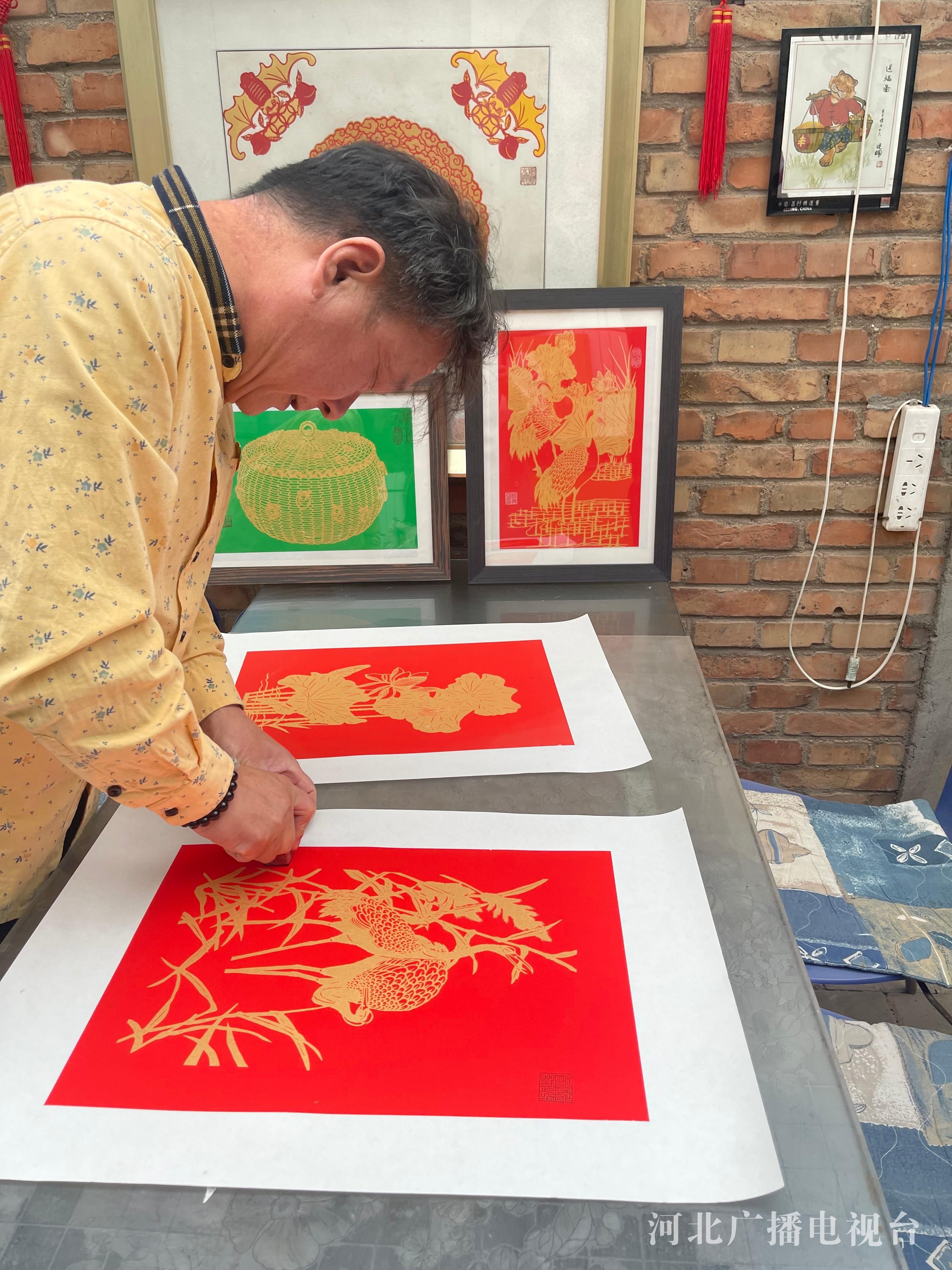 在秘青亚的创作木板上,挂着一副未完成的荷花作品,鲜绿色的底,金色的荷花、荷叶,两种艳丽的色彩在台灯下闪着光,“这里我还想再多加上几个线条,还有这里,荷叶线条也要再加上一些,”秘青亚说,他创作剪纸与别人不同,会根据不同的心境,不断地改进创作思路和修改线条。大胆的色彩运用,强烈的构图加上精益求精的创作态度,让秘青亚的衡水湖题材剪纸作品深受人们的喜爱。