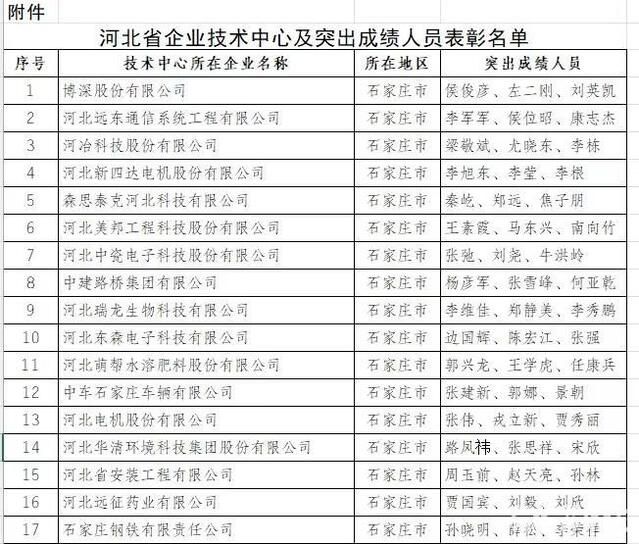 冀时客户端报道(河北台 杜岩卿 王岩)近日,河北省发改委印发通知,对2022年河北省企业技术中心评价结果为优秀的84家单位,以及在企业技术中心建设工作中做出突出成绩的人员予以表彰,其中,石家庄共有17家。