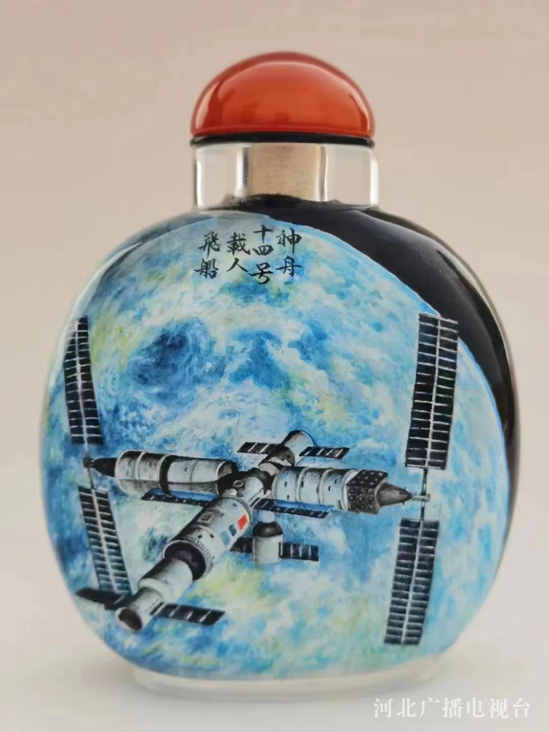 冀时客户端报道(河北台 王美中 熊瑛 李宝伟 通讯员 李静 张斌 张江泳)近日,为献礼二十大,第十三届全国人大代表、中国工艺美术大师、衡水一壶斋工艺品有限公司艺术总监张汝财与河北省工艺美术大师张相勇构思、策划并带领艺徒,绘制完成了一套内画鼻烟壶作品,用国家级非物质文化遗产——衡水内画的艺术形式,展示航天成果,抒发对党和祖国的热爱之情。