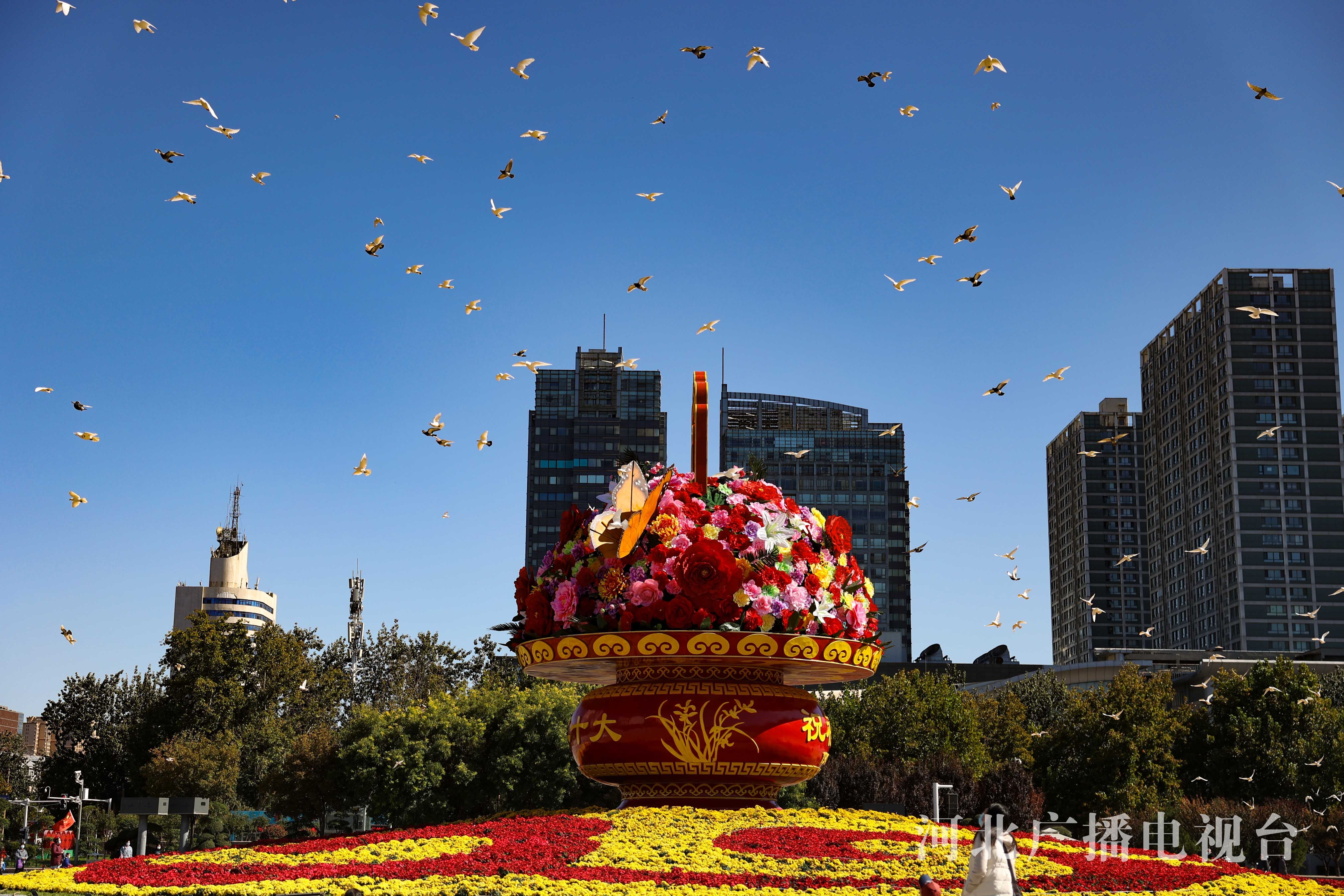冀时客户端报道(拍客 王伟倩)10月17日,在河北博物院前的石家庄文化广场上,一座花团锦簇的巨型花篮正式亮相,营造出浓厚的盛会氛围,吸引了众多市民和游客驻足拍摄观赏。