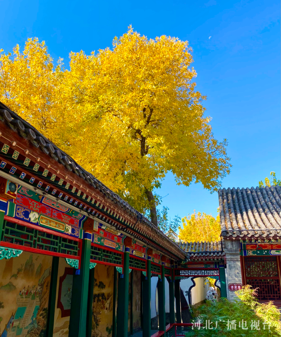 白蜡树已从夏日的一身青葱,“变妆”为通体金光灿烂的秋日华服,在荣国府垂花门东侧的白蜡树,也率先成为游客拍照留影的打卡地。