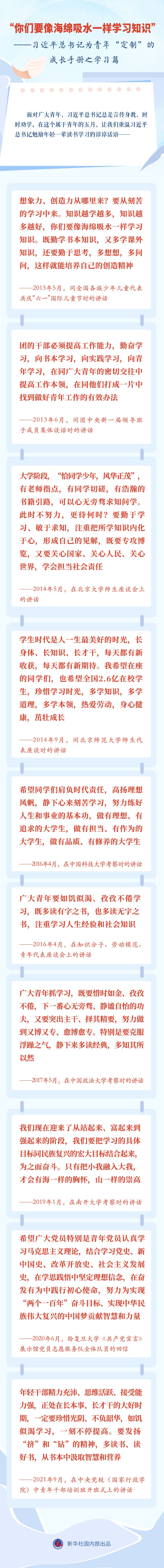 青年成长手册| “你们要像海绵吸水一样学习知识”——习近平总书记为青年“定制”的成长手册之学习篇