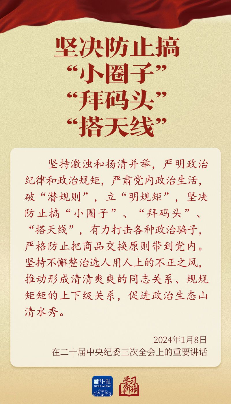 二十届中央纪委五次全会将于1月12日至14日召开。治国必先治党,治党务必从严。本期“学习新语”,我们从习近平总书记出席中央纪委全会的历次讲话中,选取关于全面从严治党之喻,一起学习领悟其中深意。