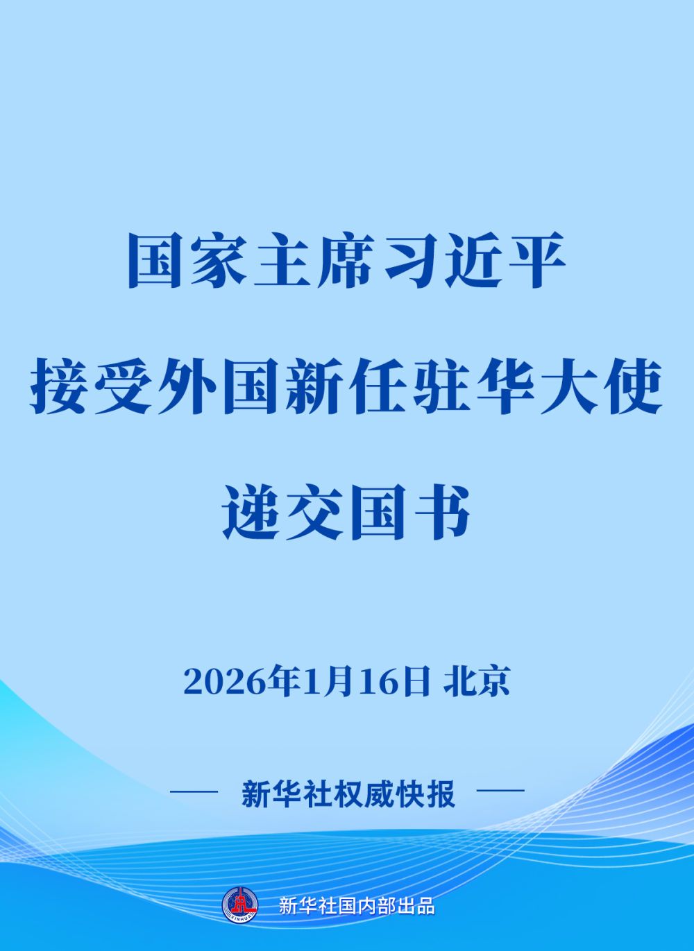 1月16日上午,国家主席习近平在北京人民大会堂接受18位驻华大使递交国书。