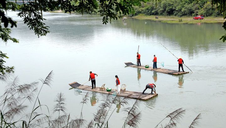浙江省台州市仙居县步路乡党员志愿者与河长一起在永安溪巡河护水(2024年6月4日摄)。新华社发(王华斌摄)