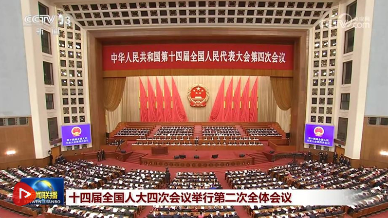 十四届全国人大四次会议9日上午在北京人民大会堂举行第二次全体会议,听取和审议全国人大常委会工作报告和最高人民法院工作报告、最高人民检察院工作报告,审议全国人民代表大会常务委员会关于法律清理工作情况和有关法律和决定处理意见的报告。
