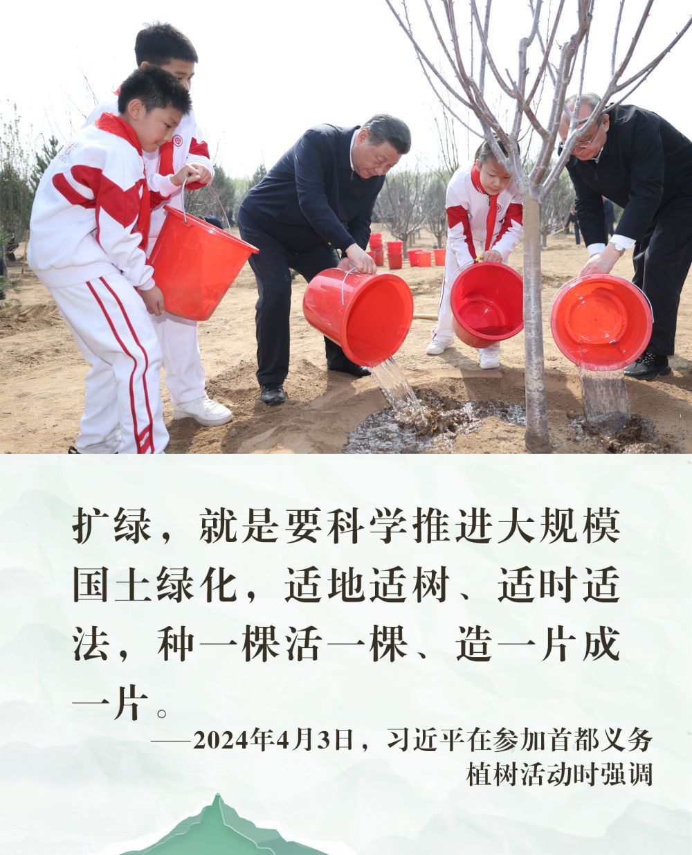 在参加义务植树活动期间,习近平总书记多次强调实事求是、因地制宜、科学规划,真正做到为人民种树、为群众造福。