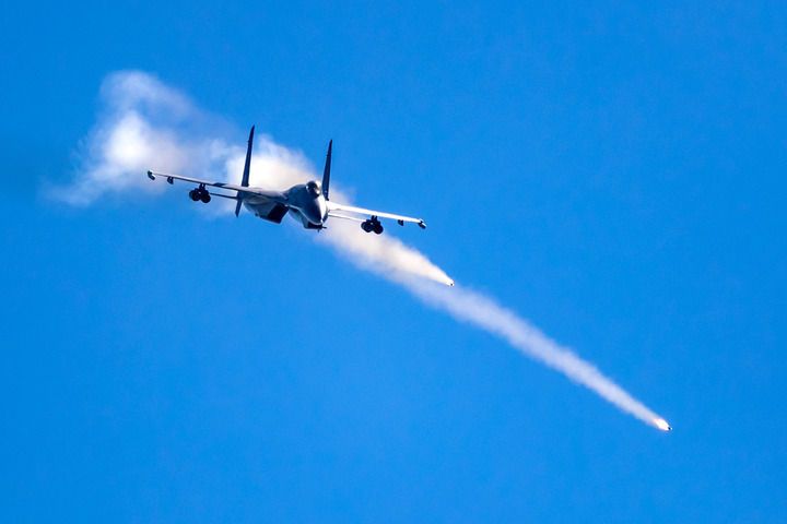 空军航空兵某旅“强军先锋飞行大队”飞行员驾驶战机进行对地打靶训练(2018年9月7日摄)。新华社发(杨盼 摄)