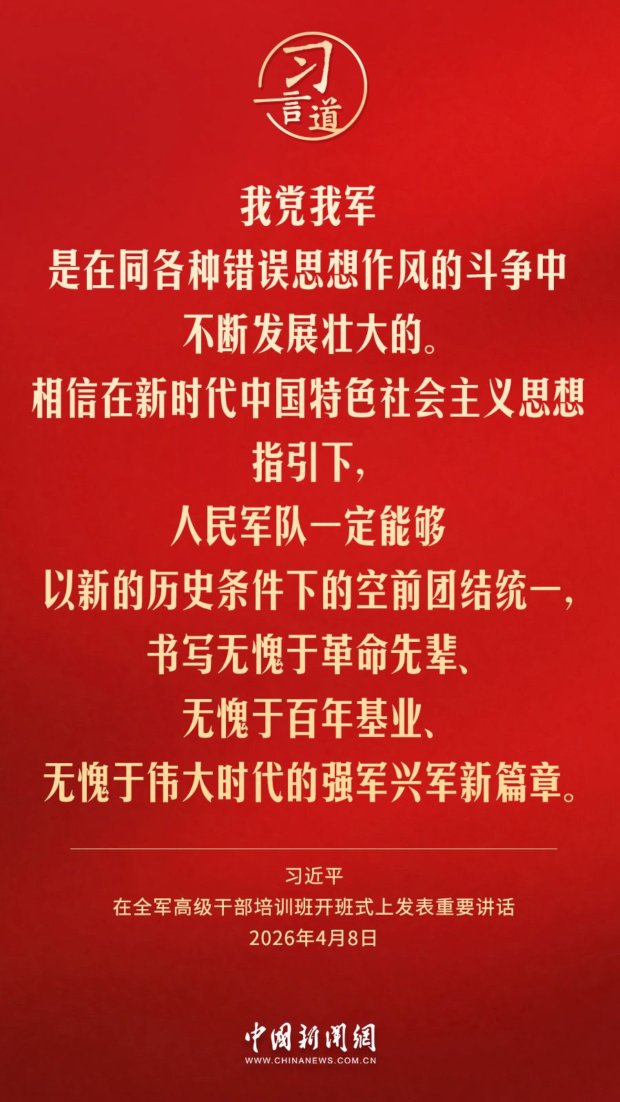 全军高级干部培训班8日在国防大学开班。中共中央总书记、国家主席、中央军委主席习近平出席开班式并发表重要讲话。他强调——