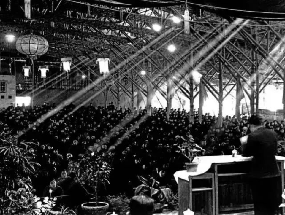 用竹篾草棚搭建的临时大礼堂(图片来源:西安交通大学新闻网)