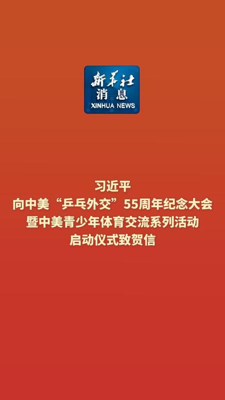 4月10日,国家主席习近平向中美“乒乓外交”55周年纪念大会暨中美青少年体育交流系列活动启动仪式致贺信。