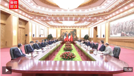 12月4日上午,国家主席习近平在北京人民大会堂同来华进行国事访问的法国总统马克龙举行会谈。