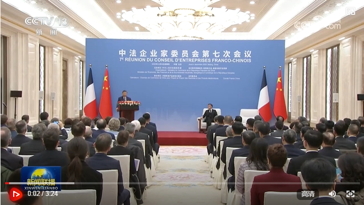 12月4日中午,国家主席习近平在北京同法国总统马克龙共同出席中法企业家委员会第七次会议闭幕式并致辞。