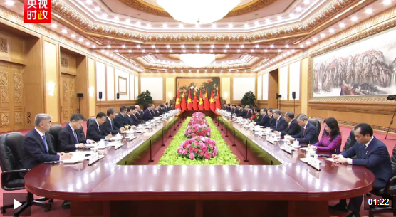 习近平指出,你当选越南国家主席后第一时间到访中国,体现了你对发展中越关系的高度重视。无论国际形势如何变化,中方始终将越南作为周边外交优先方向,愿同越方秉持初心、赓续友谊,团结协作、相互支持,高质量推进全面战略合作,加快构建更高水平具有战略意义的中越命运共同体。