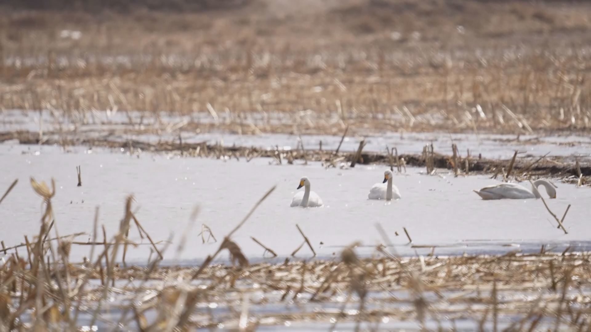 张家口怀来:官厅水库国家湿地公园 天鹅戏水春色浓