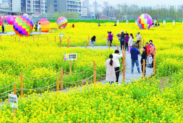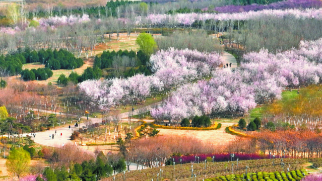 滹沱河畔的桃花、杏花、海棠等争相吐艳,让前来游玩的市民沉浸在这美丽的景色之中。