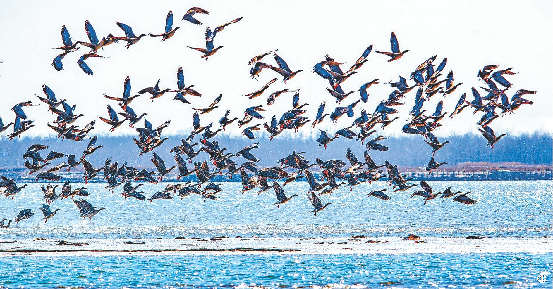 七里海潟湖处于东亚—澳大利西亚候鸟迁徙通道上,每年10月和11月,都会有大批候鸟飞临这里中转停歇,再向南迁徙。