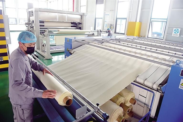沧州工苑新型膜材料有限公司聚苯硫醚纤维隔膜生产线正在运转。傅新春 摄