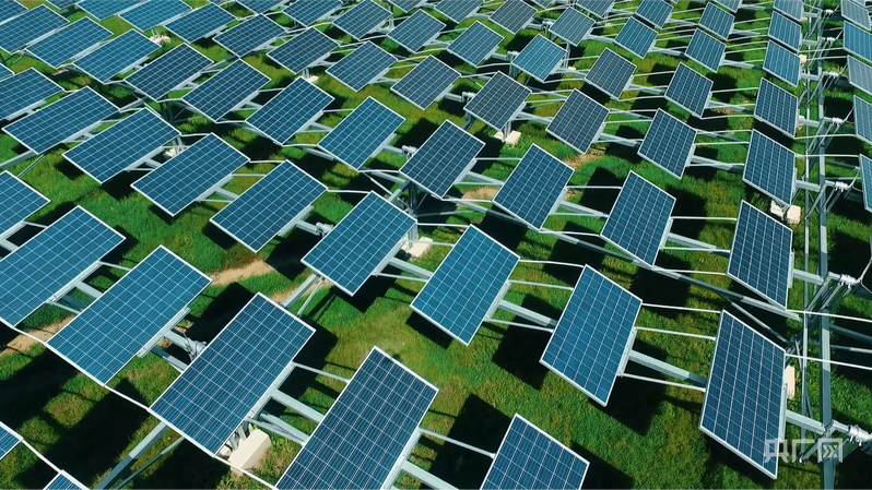 光伏发电板整齐排列(央广网见习记者 张润 摄)