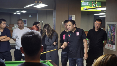 本次培训的核心亮点,当属资深教练臧实为的专业授课。拥有多年台球教学经验的臧教练,深谙新手入门的痛点与难点,在课程设计上摒弃了传统 “理论堆砌” 的模式,转而采用 “拆解式教学 + 实战演练” 的方式,将复杂的台球技巧转化为通俗易懂的步骤。从握杆姿势的手指发力要点、站姿的身体平衡技巧,到瞄准的 “三点一线” 法则、发力击球的力度控制,臧教练不仅亲自示范标准动作,还针对每位学员的薄弱环节进行一对一指导 —— 有的学员握杆姿势僵硬,他会手把手调整手部位置;有的学员瞄准总是偏差,他会用辅助工具帮学员找准视觉焦点,耐心细致的教学风格深受学员好评。