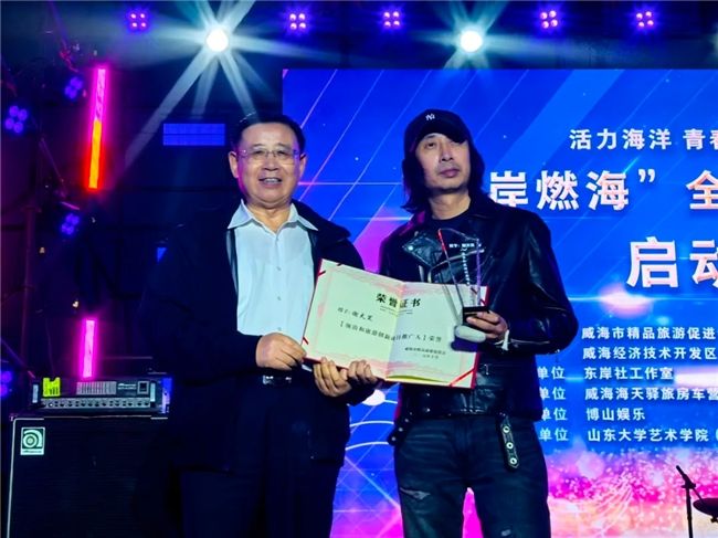 10月3日谢天笑接受威海中华文化促进会和威海精品旅游促进会的荣誉。