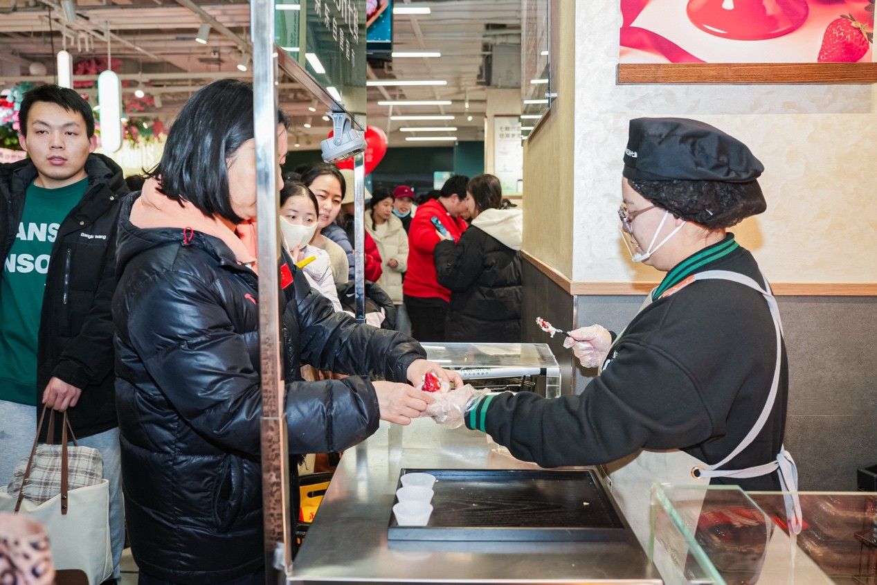 自1月1日起,位于裕华万达广场的京东七鲜超市石家庄首店推出全场免费试吃活动,设立40余个试吃点位,开启了一场“舌尖上的狂欢”,迅速点燃市民参与热情。假期三天,该店日均客流量突破3万人次,累计接待顾客超10万人。