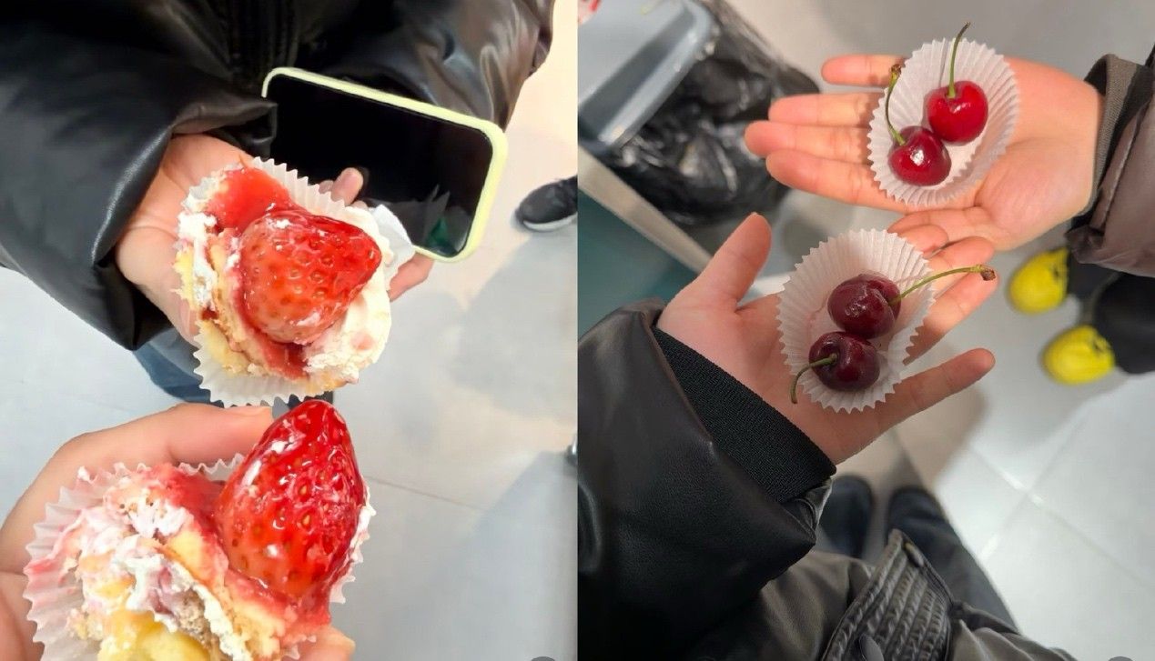 值得注意的是,七鲜的试吃不仅品类丰富、全天不限量,而且“规格十足”:车厘子一次给两颗,草莓蛋糕是一整块,鸡蛋是剥好壳的整颗……正如一位顾客所说:“这哪是试吃,分明是正餐加甜点。”