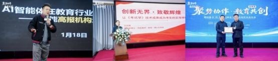 18日上午,火山哥进一步阐述了《教育AI智能体在教育行业超级应用》的未来图景。压轴环节中,全国著名教育专家王后雄教授现场就高考发展方向做出分析,并展示了2026版《押题卷》及新品《临考抢分特训》,并为合作机构颁发授权证书,引发会场热烈反响。