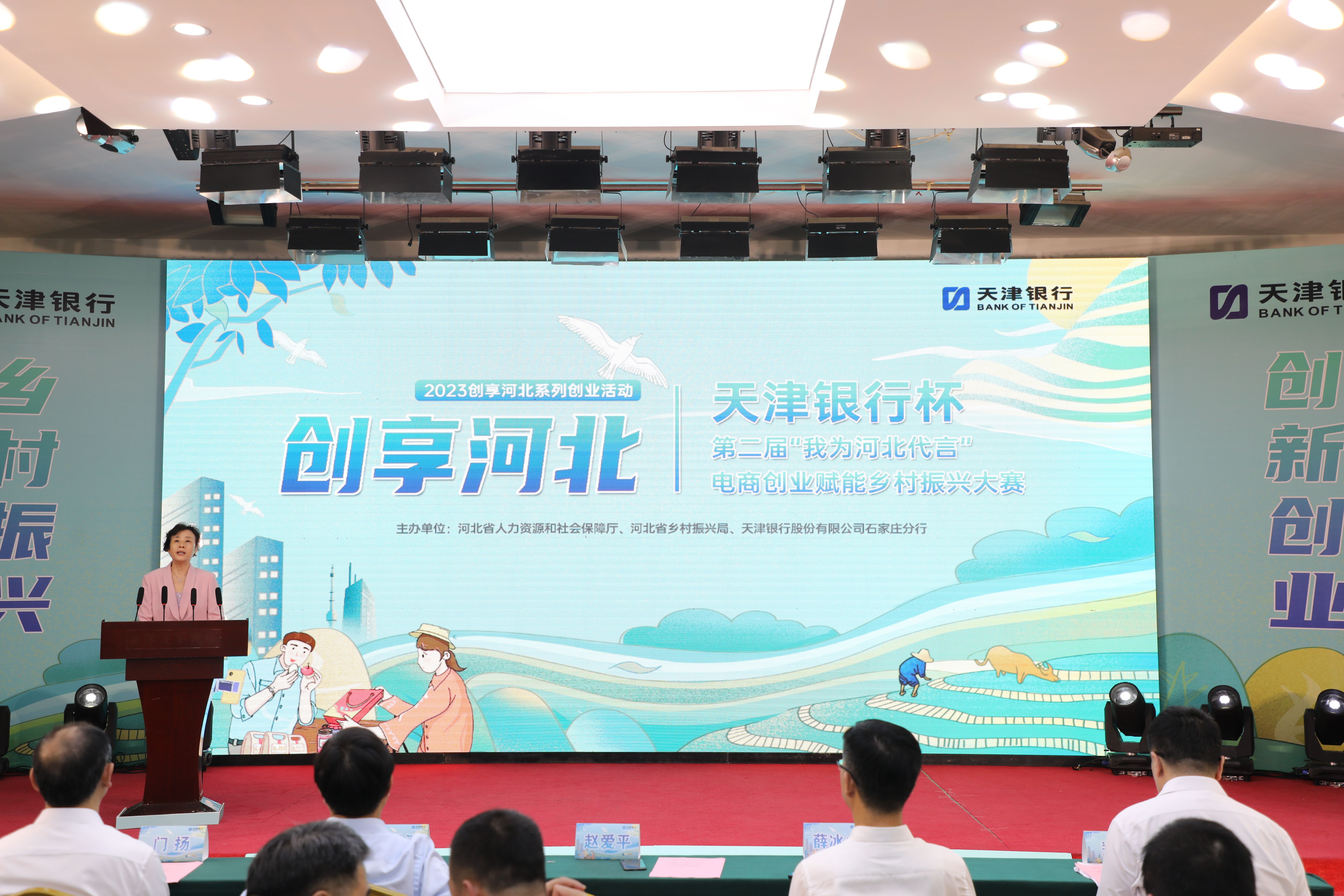 7月30日,河北省人力资源和社会保障厅、河北省乡村振兴局、天津银行股份有限公司石家庄分行联合主办的“天津银行杯”第二届“我为河北代言”电商创业赋能乡村振兴大赛成功举办!省人社厅一级巡视员赵爱平同志出席大赛开幕式并讲话。省乡村振兴局、天津银行总行、雄安新区管委会相关负责同志出席开幕式并致辞。参加开幕式的还有各市(含定州、辛集市)、雄安新区参赛选手代表、指导教师、领队,新闻媒体记者,省人社厅、省乡村振兴局、天津银行总行、石家庄分行和安新县政府的负责同志。