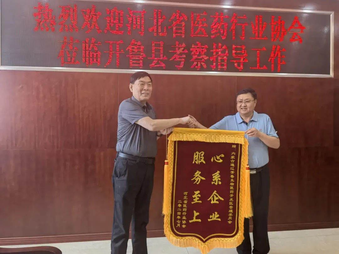 为了表示感谢开鲁生物医药开发区管委会对河北医药企业的关心和支持,河北省医药行业协会为管委会敬赠锦旗。