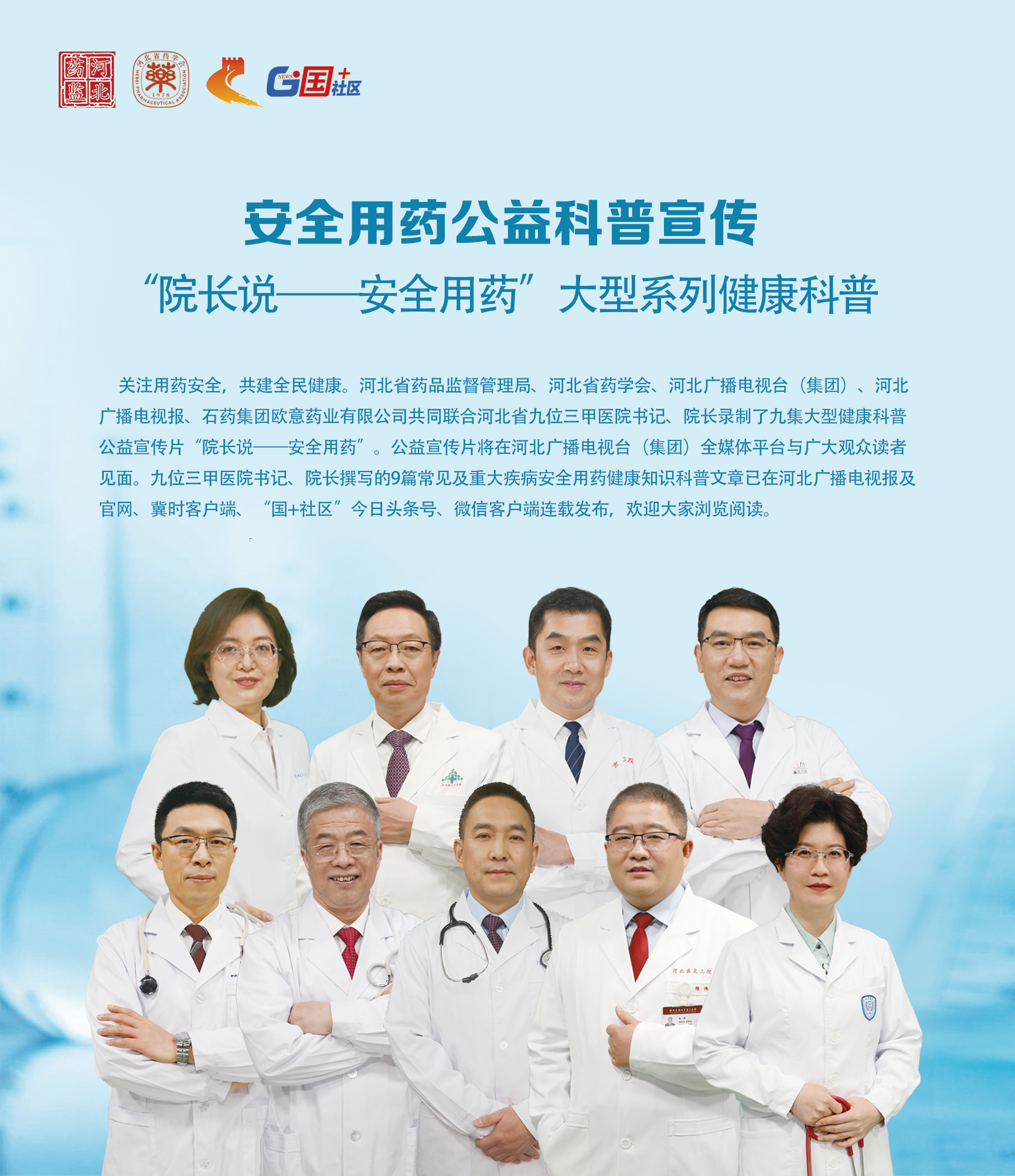 为广泛宣传药品安全科普知识,提高社会大众安全用药意识。在2024年河北省“药品安全宣传周”到来之际,河北省药品监督管理局、河北省药学会、河北广播电视台(集团)、河北广播电视报、石药集团控股有限公司共同邀请我省多位三甲医院书记、院长,联合录制了九集大型系列健康科普公益宣传片——“院长说—安全用药”。